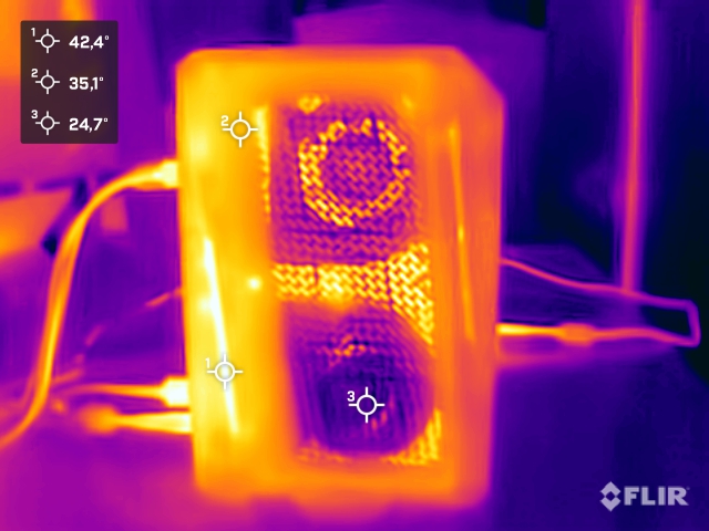 (±) 3: The average temperature for the upper side is 33.7 °C / 93 F, compared to the average of 32.5 °C / 91 F for the class Mini PC.