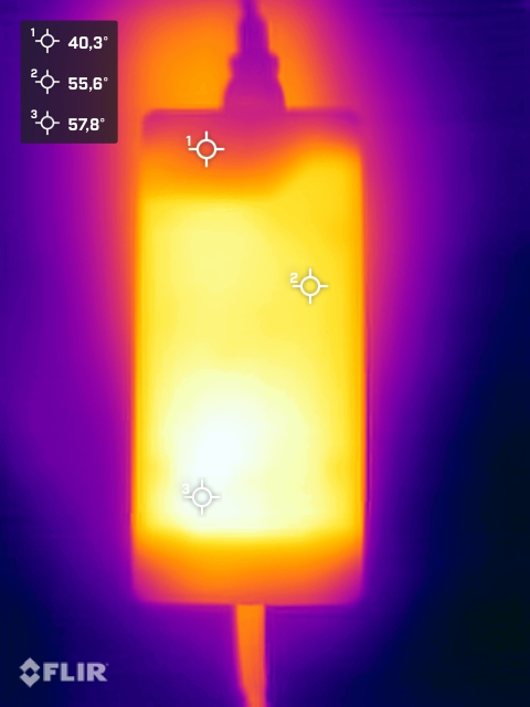 (+) The bottom heats up to a maximum of 39.2 °C / 103 F, compared to the average of 36.6 °C / 98 F