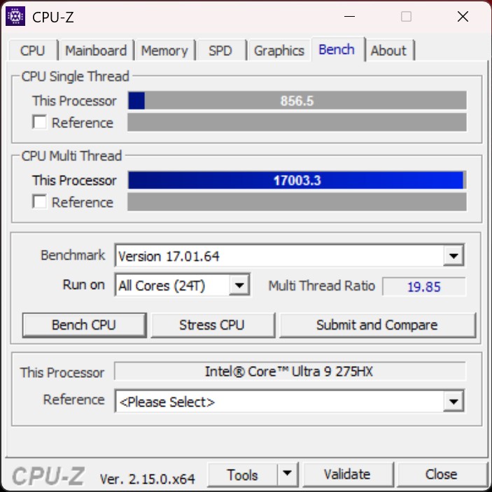 The Intel Core Ultra 9 275HX is one of the best processors Intel currently offers in the mobile sector. This is also impressively demonstrated in our CPU benchmarks, in which the Asus ROG NUC 15 performs excellently. Both the single-core performance and the multi-core performance are perfect and do not reveal any weak points. Even the brand new and also extremely powerful AMD Ryzen AI Max+ 395 (in the Bosgame M5) can often be beaten.