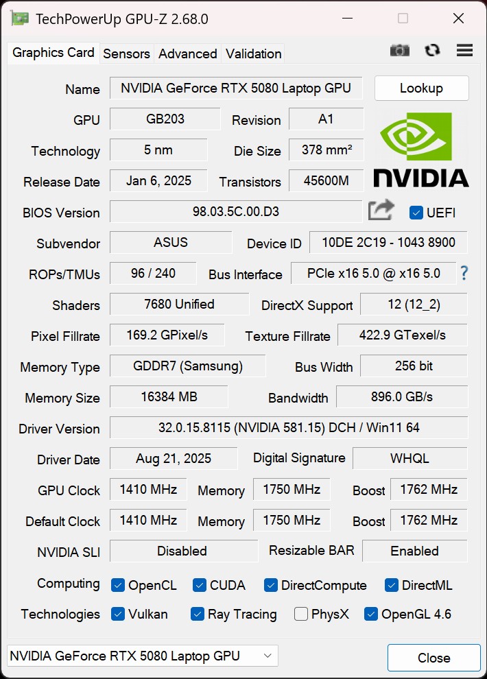 | Asus ROG NUC 15-90AS00I1 Ultra 9 275HX, GeForce RTX 5080 Laptop | BOSGAME M5 Ryzen AI Max+ 395, Radeon 8060S | Asus ROG NUC 14-90AS0051 Ultra 9 185H, GeForce RTX 4070 Laptop GPU | Minisforum G7 PT R9 7945HX, Radeon RX 7600M XT | Acemagic M2A i9-12900H, GeForce RTX 3080 Laptop GPU | Minisforum AtomMan G7 Ti i9-14900HX, GeForce RTX 4070 Laptop GPU | Zotac ZBOX Magnus EN374070 i7-13700HX, GeForce RTX 4070 Laptop GPU | Average NVIDIA GeForce RTX 5080 Laptop | Average of class Mini PC | |