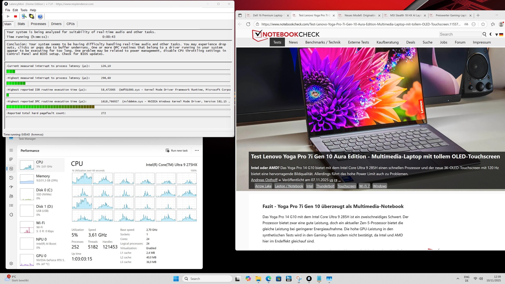| DPC Latencies / LatencyMon - interrupt to process latency (max), Web, Youtube, Prime95 | |