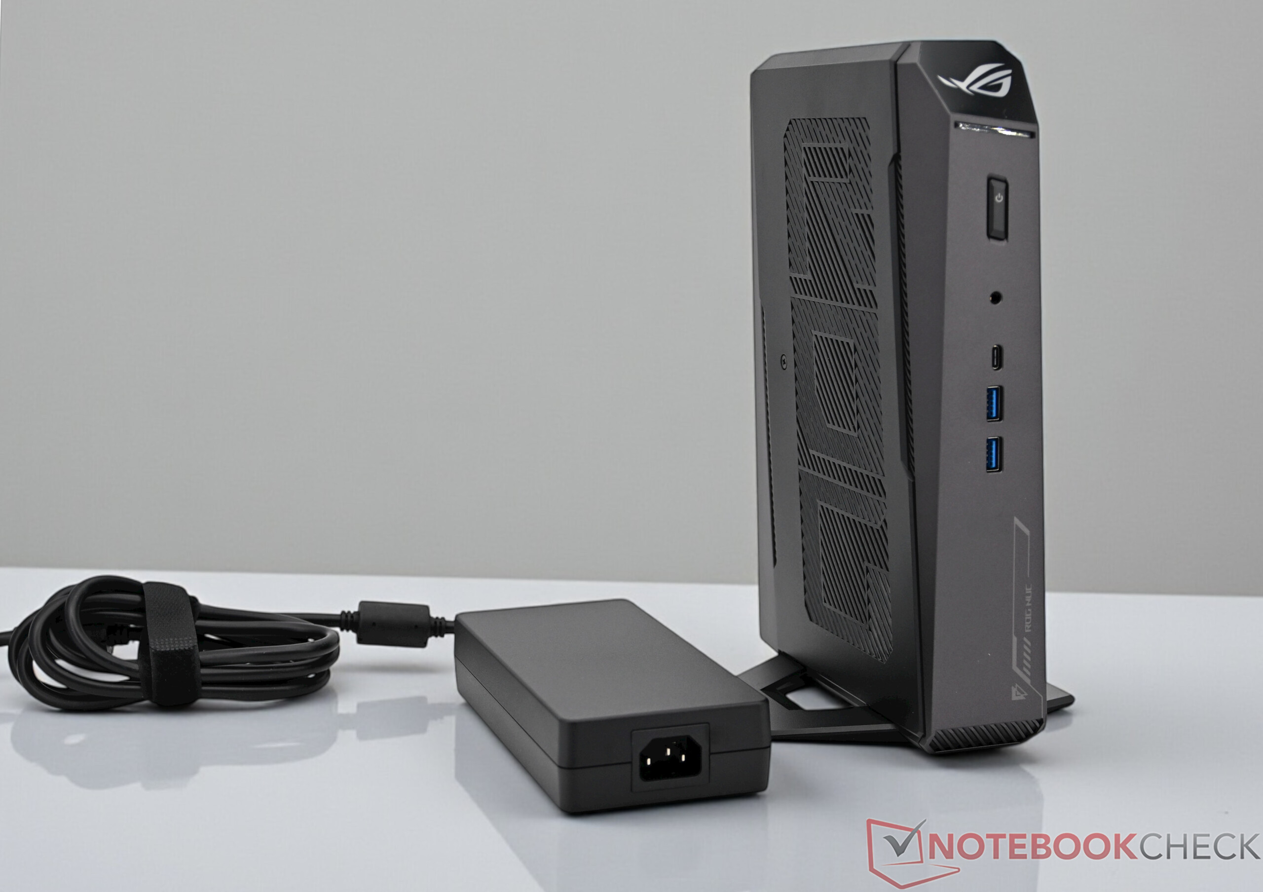 The ASUS ROG NUC only comes with the device itself with a mounted stand and a large 330-watt power supply unit.