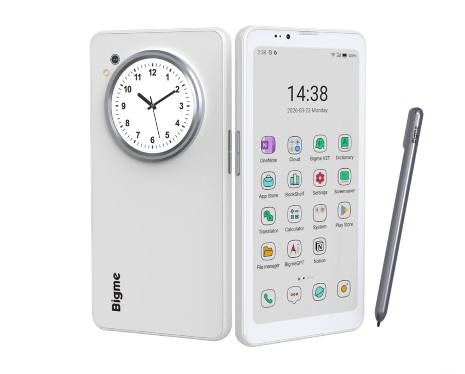 The smartphone is equipped with a 6.13-inch E Ink color display with a 300 PPI resolution in black and white mode, and a 150 PPI resolution for color. On the other hand, the LCD panel on the back is a 1.85-inch screen with a 360 × 360 resolution. Bigme says the secondary display serves as a quick-glance hub that can be used to check notifications or as a viewfinder when taking pictures.
