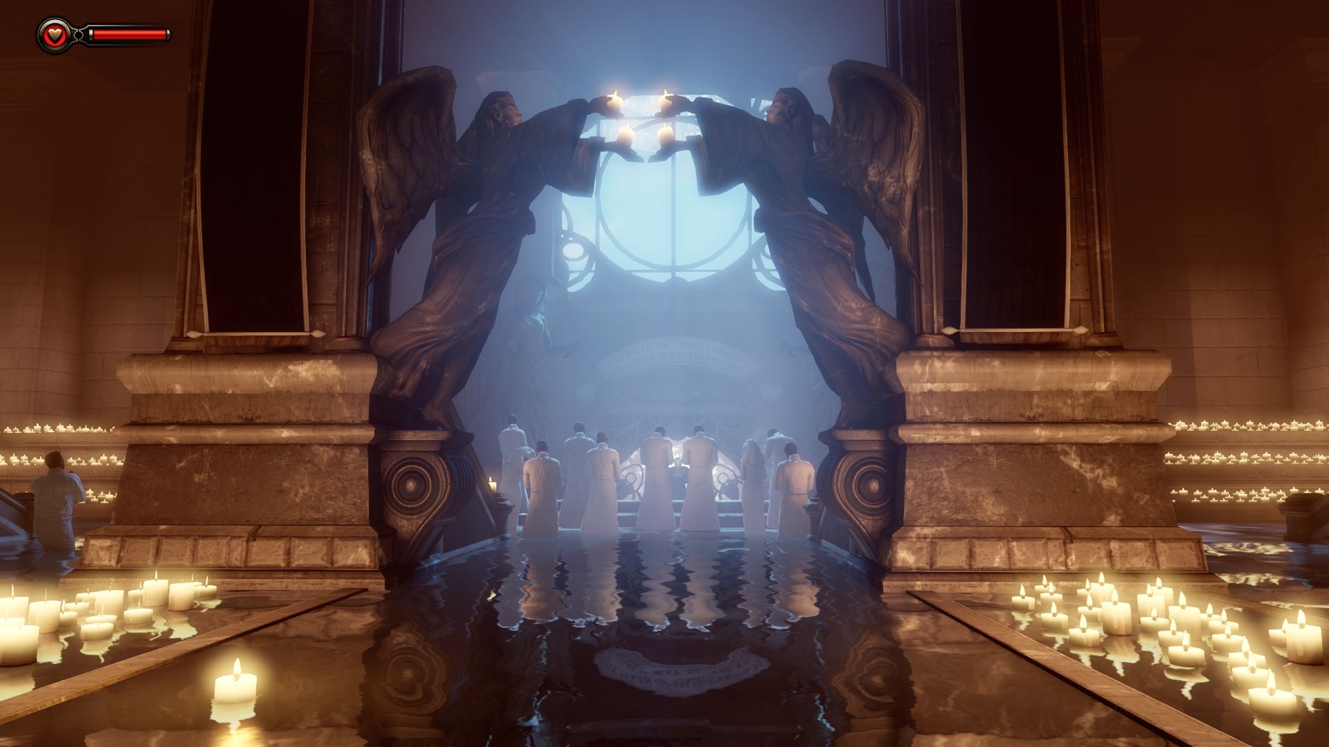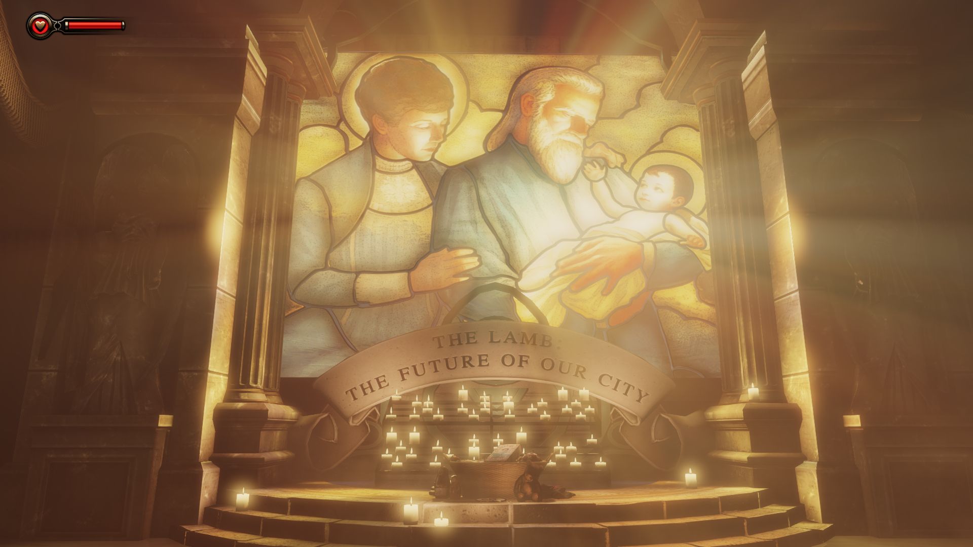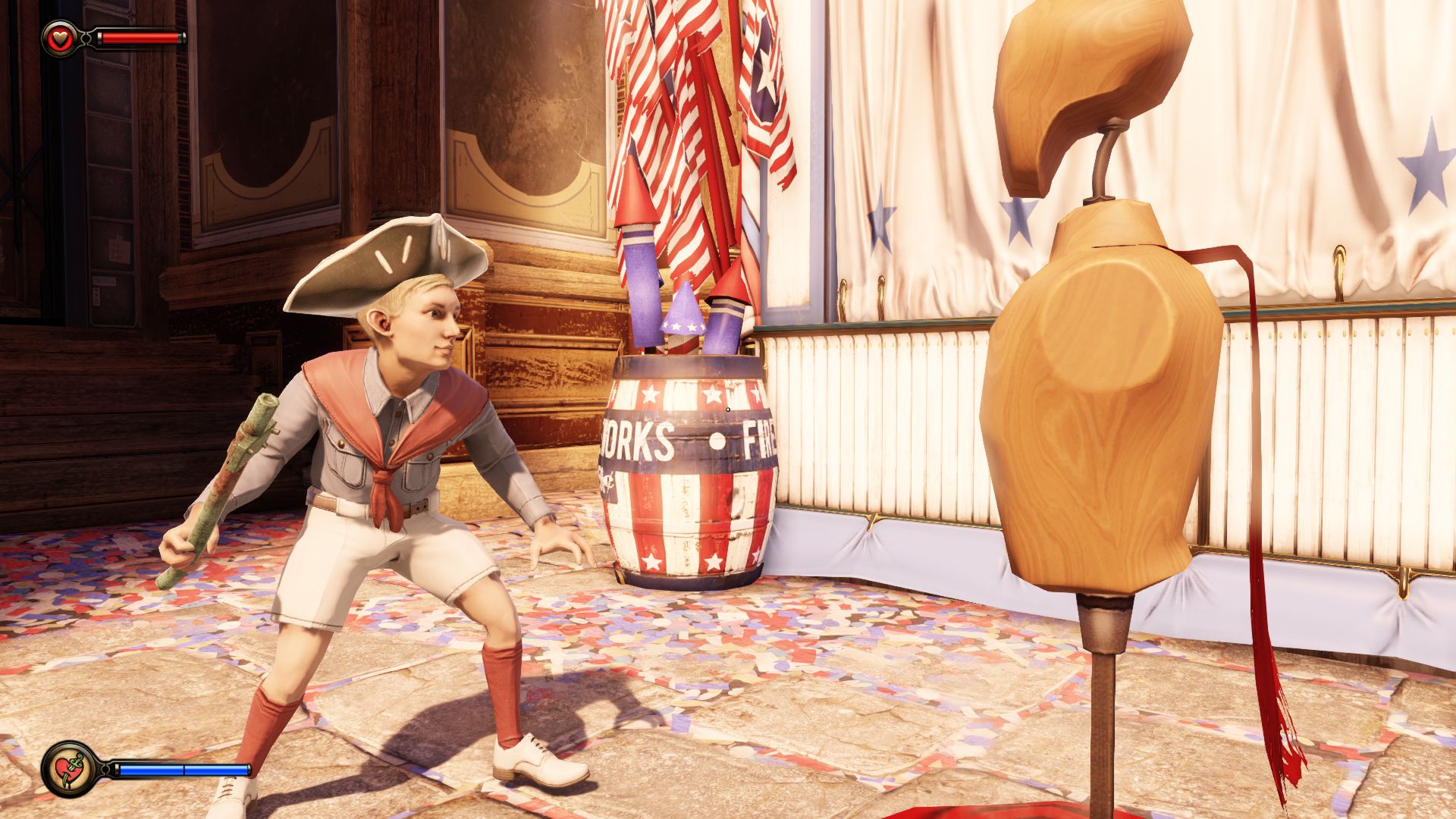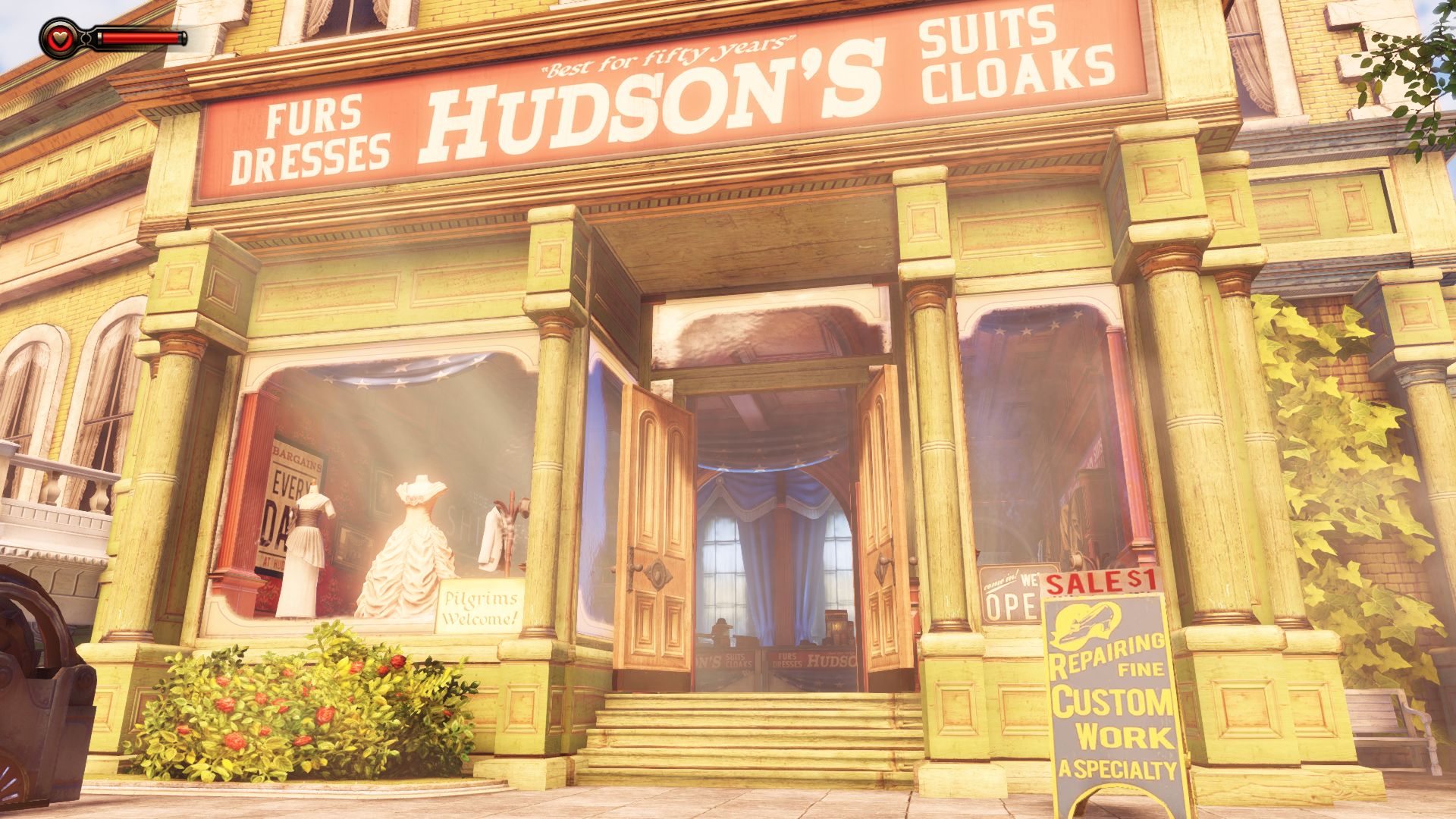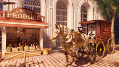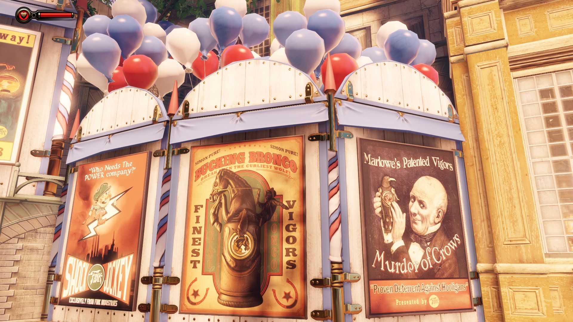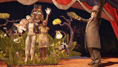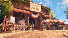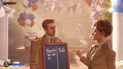 "Powerful" also fits for the atmosphere of the game. It borders to insanity what Irrational Games has delivered in this category. We have not seen such harmonious design and attention to detail in a long time (Dishonored was one of the last highlights). We have to pay the developers respect for their unbelievable effort. Nearly every screenshot could be a wonderful poster, wallpaper or picture in an art-book. The game world nearly explodes because of all those objects, be it flowers, candles, market stands, balloons or flags. Atmospherically speaking, BioShock Infinite is the new reference.