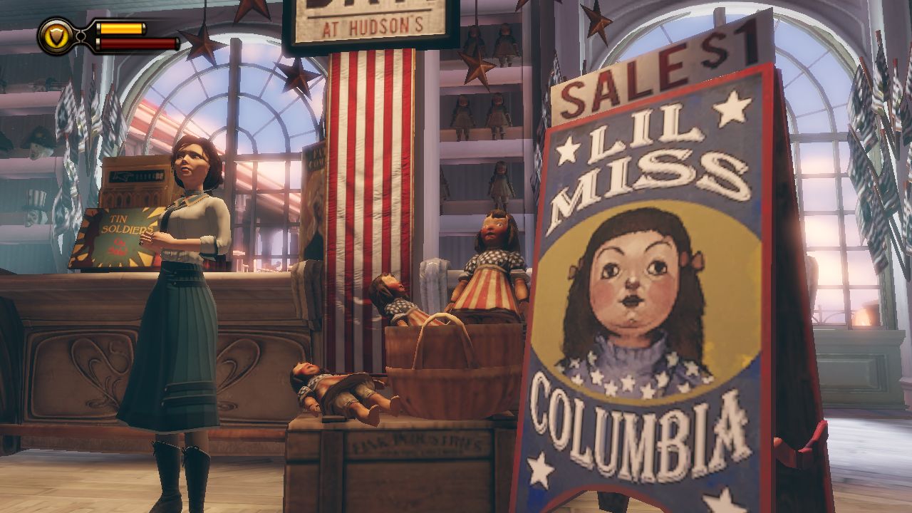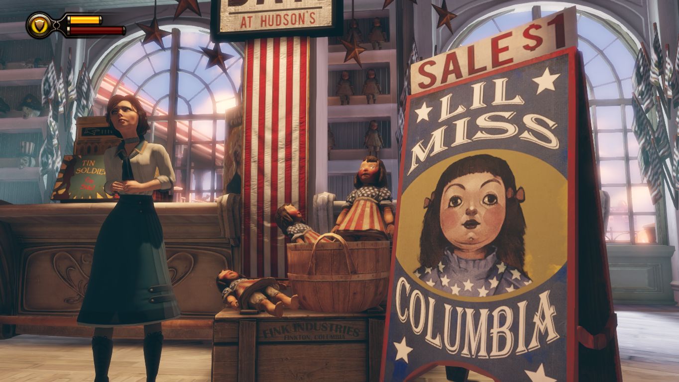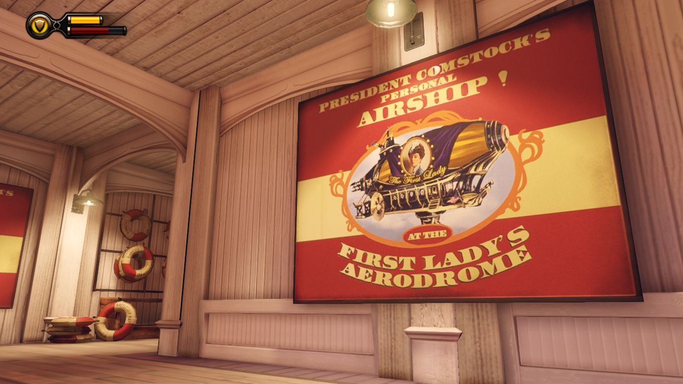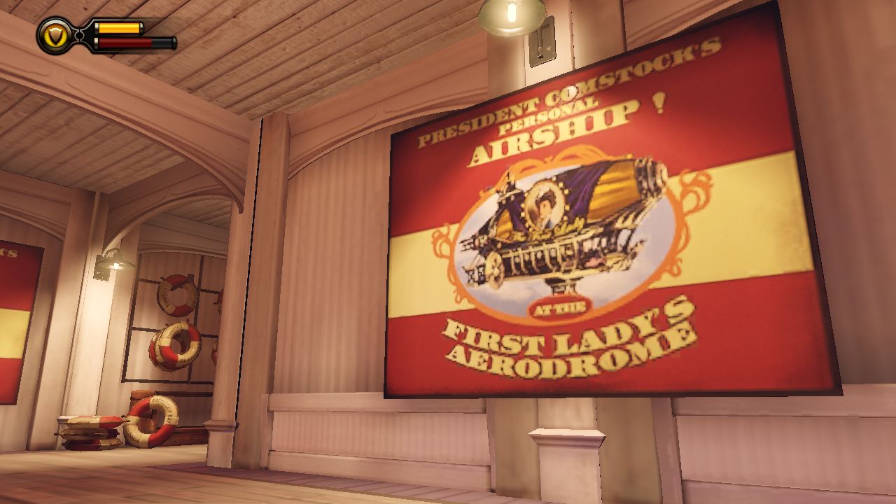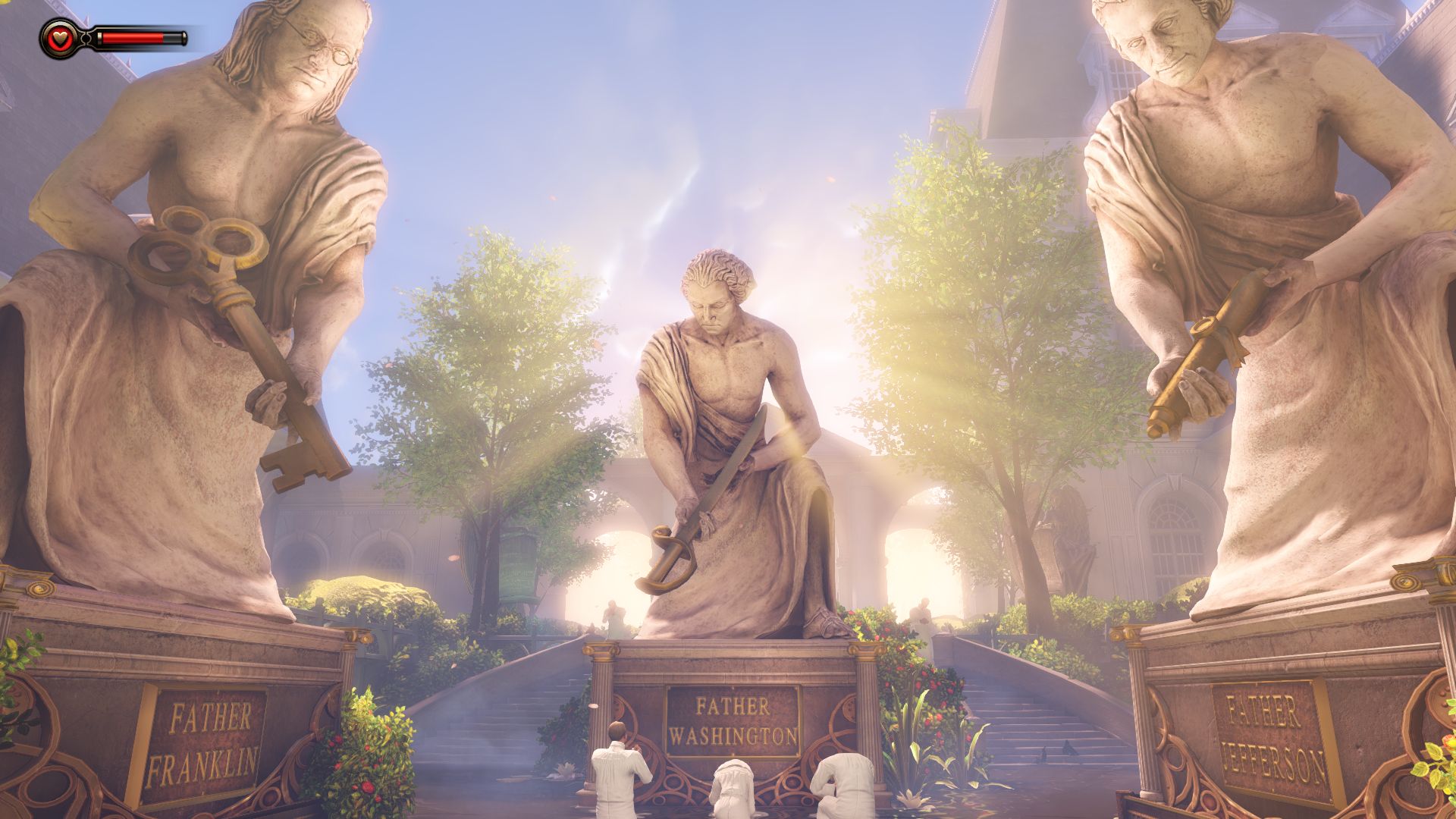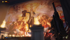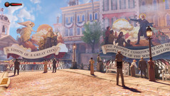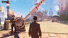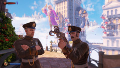 Just like in the first BioShock, the game starts in a light house. But this is the only similarity between the two games concerning atmosphere. Unlike the first BioShock, BioShock Infinite unfolds a picturesque idyll at the beginning of the game. However this misleads extremely. The "steampunk-like" cloud empire is dominated by a man named Comstock. The ubiquitous propaganda posters praise Comstock as prophet and religious leader. Attentive players will notice quickly that not everything runs smoothly behind the curtains because, just as in reality, there are some citizens who exaggerate with their faith and piousness. Differently put: Columbia is ruled by racism and fanaticism. It is no surprise that the main character soon spoils things with the citizens and heads for a confrontation.