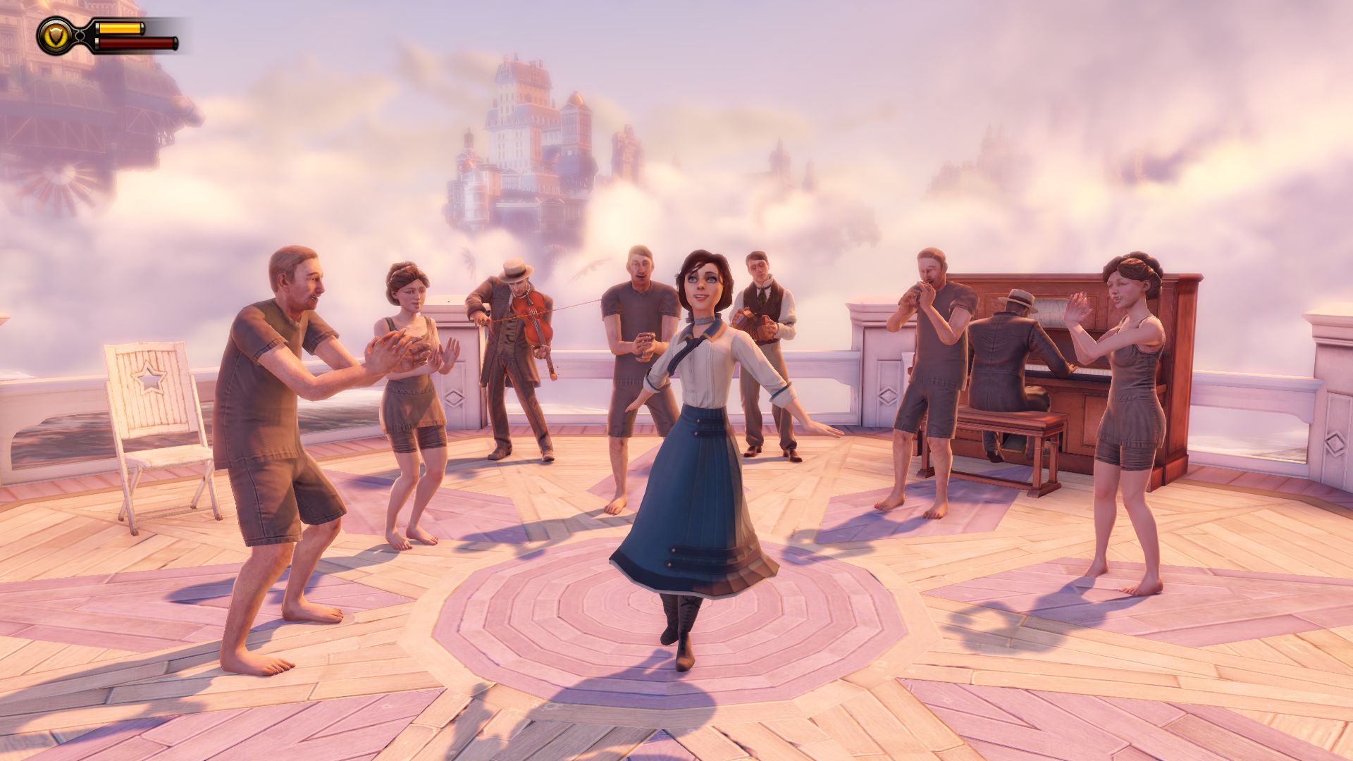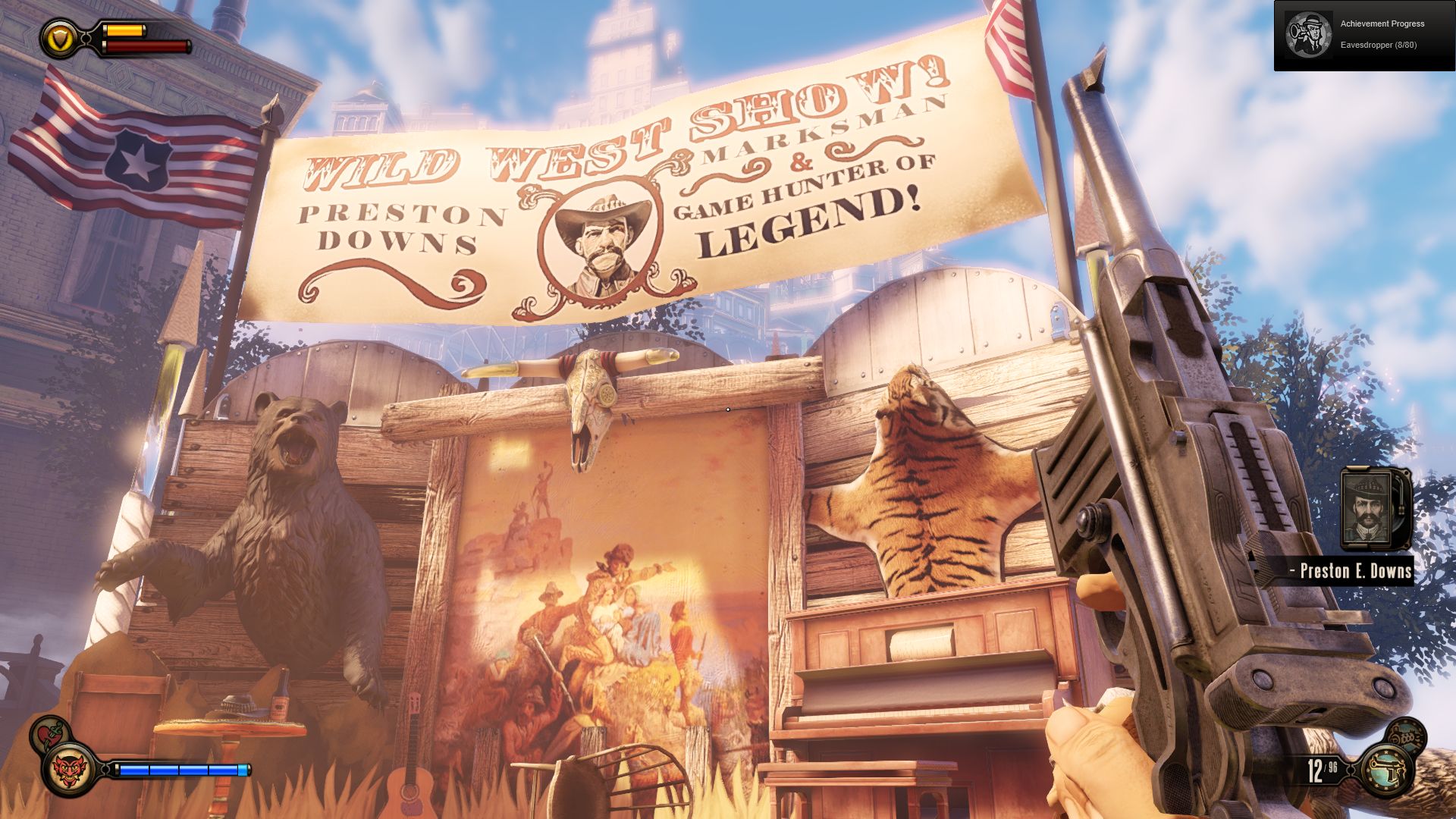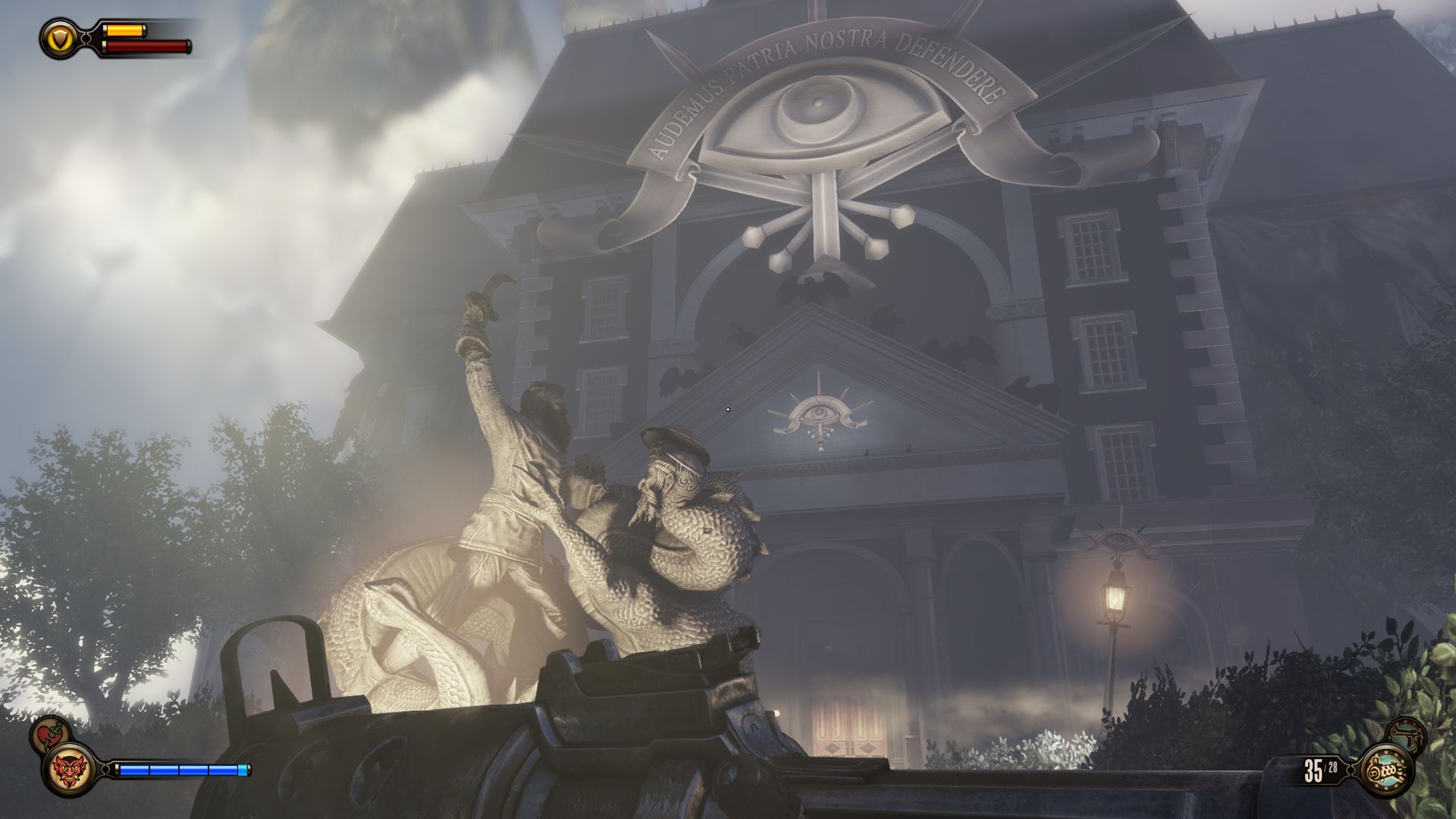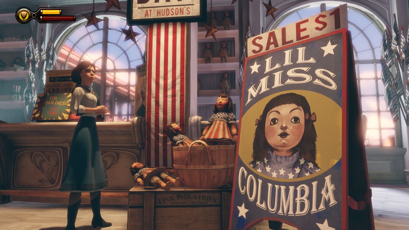 Just like in the first BioShock, the game starts in a light house. But this is the only similarity between the two games concerning atmosphere. Unlike the first BioShock, BioShock Infinite unfolds a picturesque idyll at the beginning of the game. However this misleads extremely. The "steampunk-like" cloud empire is dominated by a man named Comstock. The ubiquitous propaganda posters praise Comstock as prophet and religious leader. Attentive players will notice quickly that not everything runs smoothly behind the curtains because, just as in reality, there are some citizens who exaggerate with their faith and piousness. Differently put: Columbia is ruled by racism and fanaticism. It is no surprise that the main character soon spoils things with the citizens and heads for a confrontation.