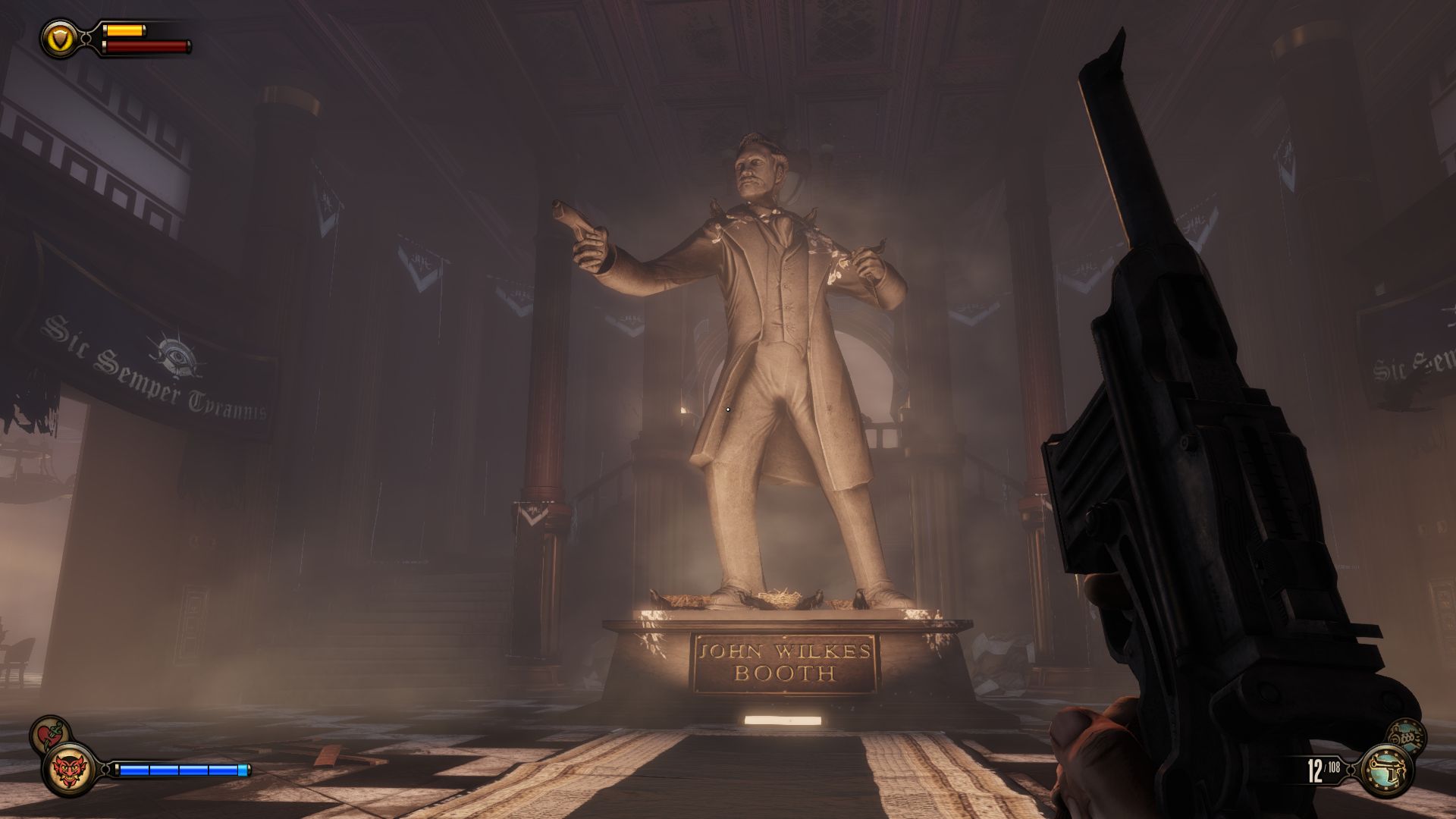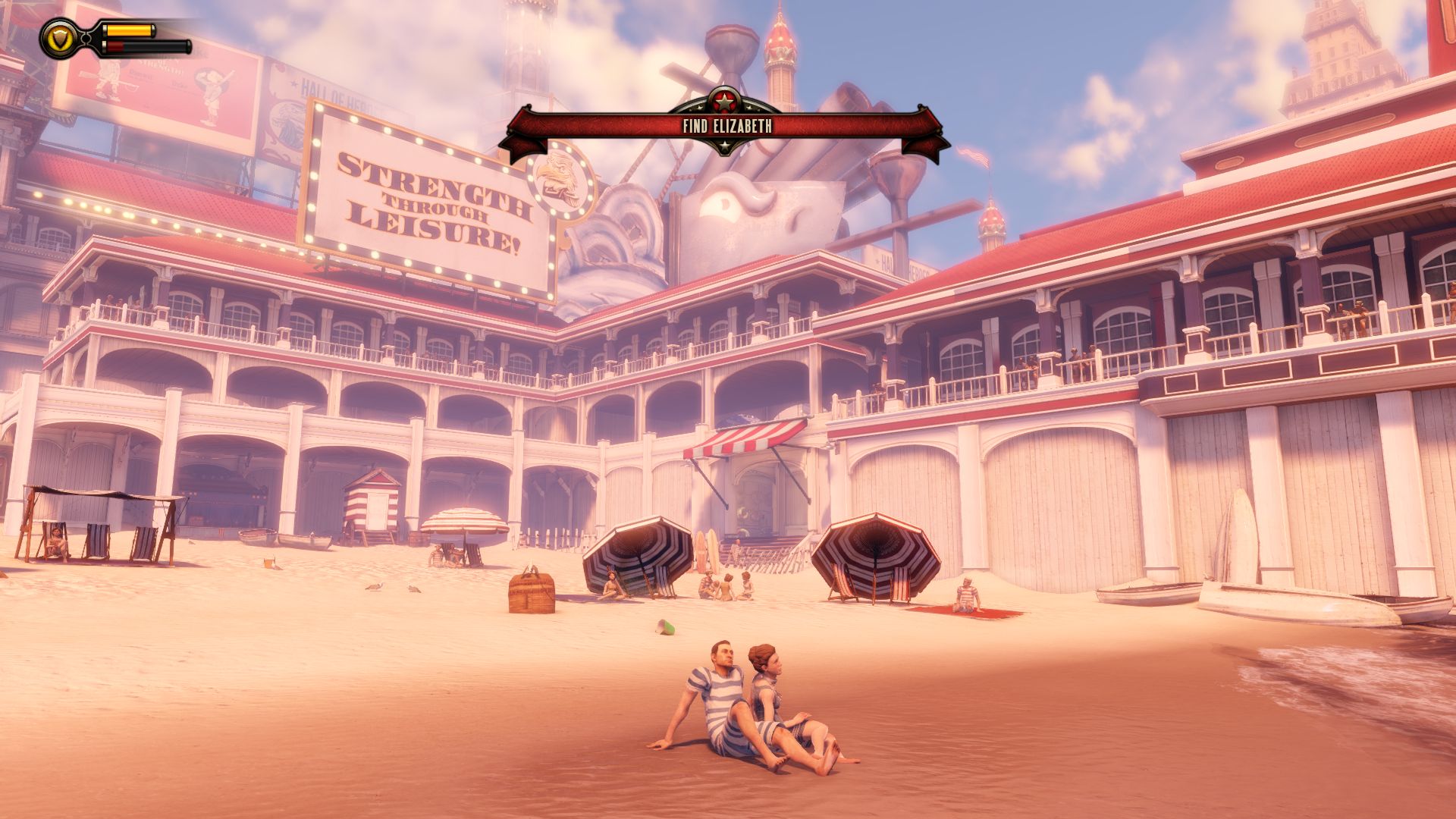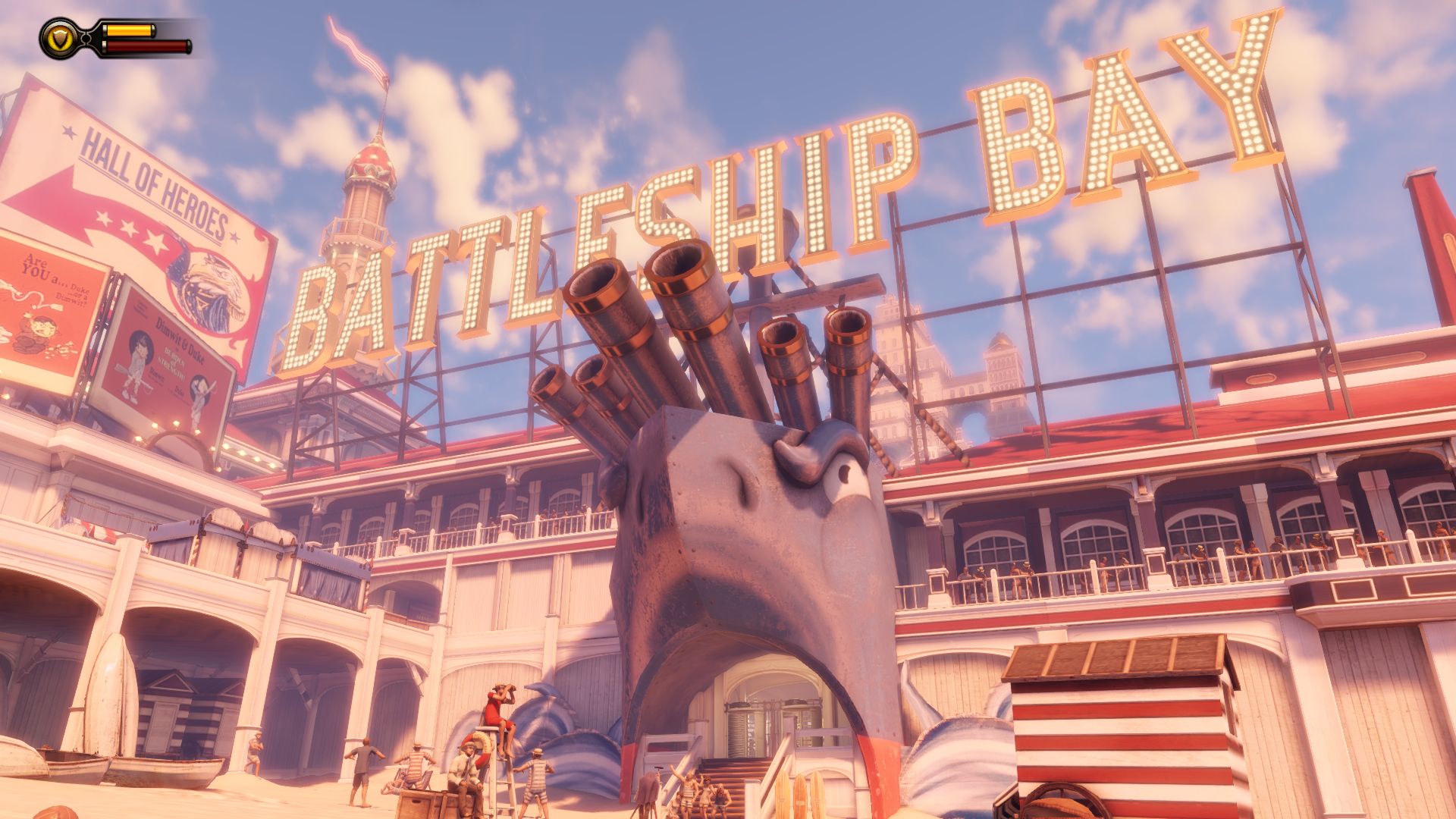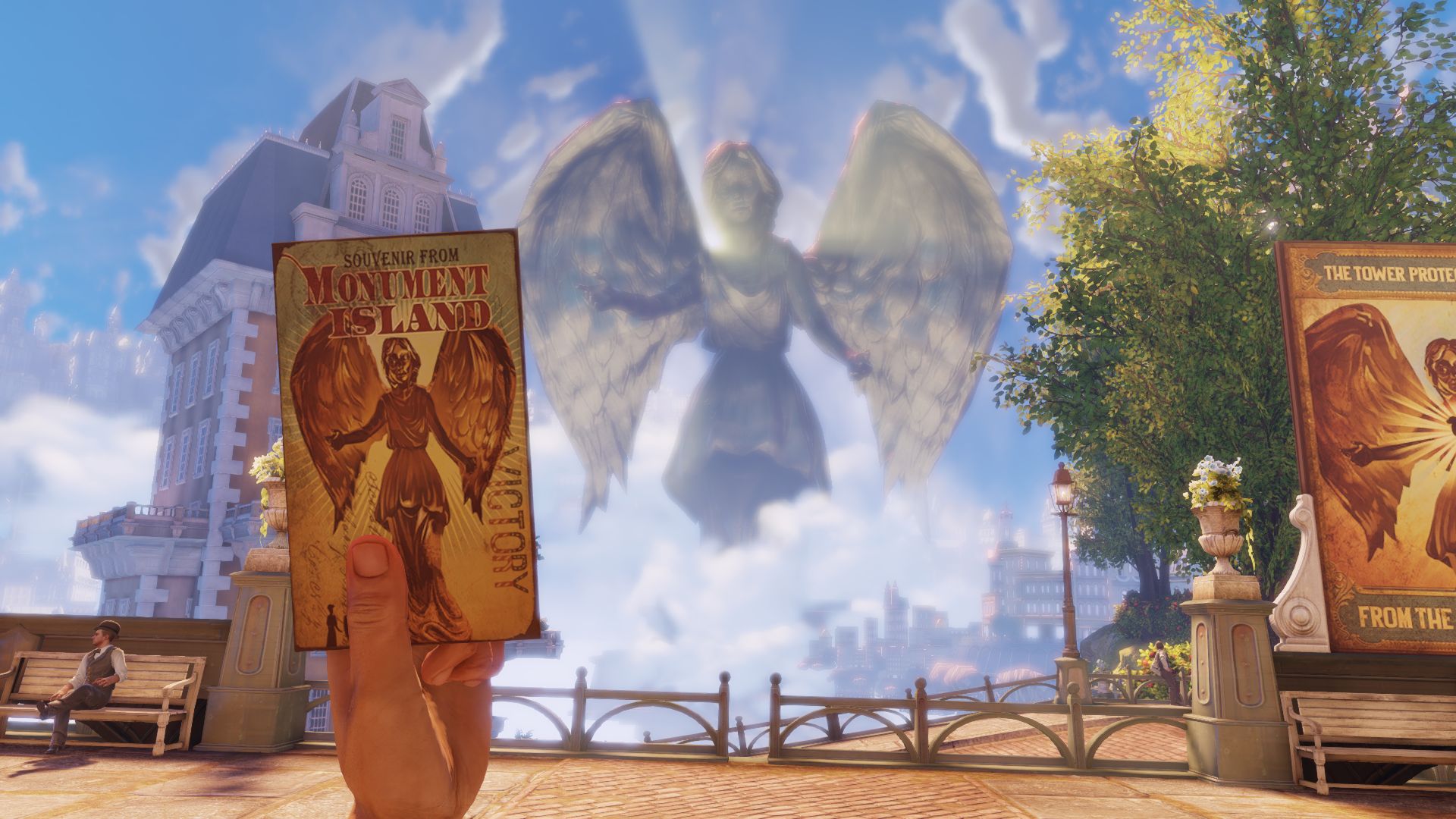 Just like in the first BioShock, the game starts in a light house. But this is the only similarity between the two games concerning atmosphere. Unlike the first BioShock, BioShock Infinite unfolds a picturesque idyll at the beginning of the game. However this misleads extremely. The "steampunk-like" cloud empire is dominated by a man named Comstock. The ubiquitous propaganda posters praise Comstock as prophet and religious leader. Attentive players will notice quickly that not everything runs smoothly behind the curtains because, just as in reality, there are some citizens who exaggerate with their faith and piousness. Differently put: Columbia is ruled by racism and fanaticism. It is no surprise that the main character soon spoils things with the citizens and heads for a confrontation.