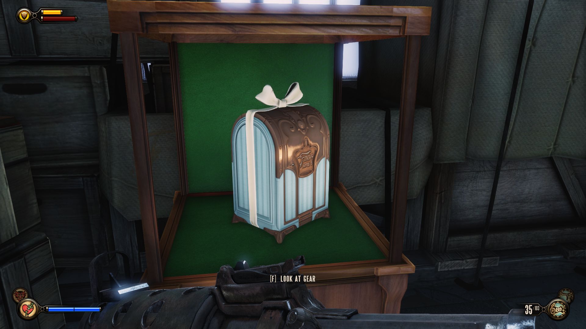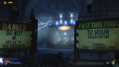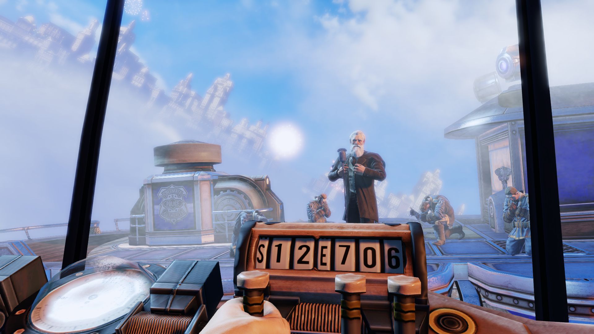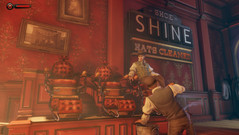 Irrational Games has even installed a few innovations. Articles of clothing, which are mostly well hidden in the levels, give Booker DeWitt several extras. Needless to say weapons and special capabilities are upgradable as well. Additionally, every few meters you are illuminated by a vending machine. There you can buy vital energy, salt (the mana of BioShock Infinite), and ammunition for hard cash.