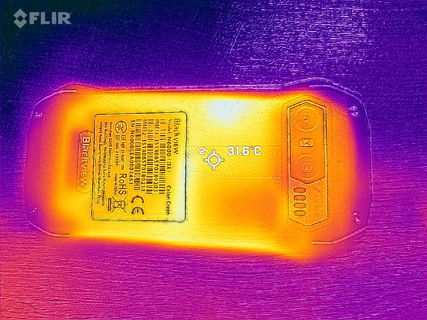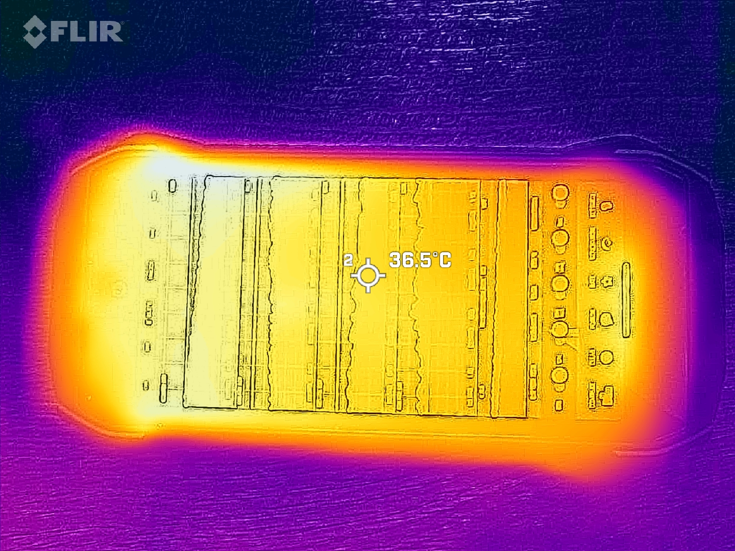 The phone heats up to a maximum of 37.5 °C even under heavy load. This is noticeable as a slight difference to the surroundings with your hand on the casing but is by no means unpleasant. The SoC is not throttled, even if the phone is under heavy load for a longer period of time.