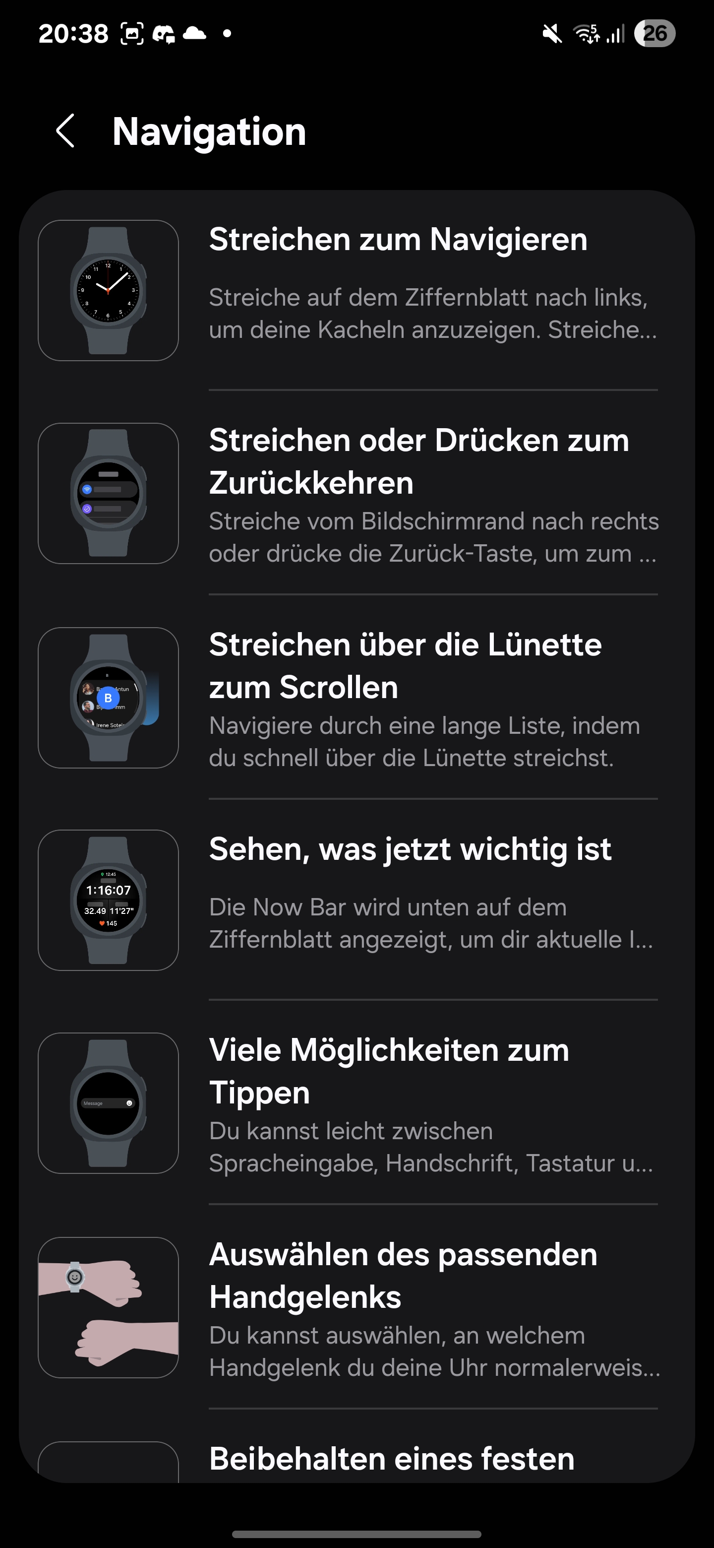 The setup asks whether the smartwatch is worn on the left or right hand and the preferred position of the keys, and various settings on health measurements are presented. At the end of the setup process, there is an overview with the commands in the app. In addition, a tutorial directly on the smartwatch introduces its operation.