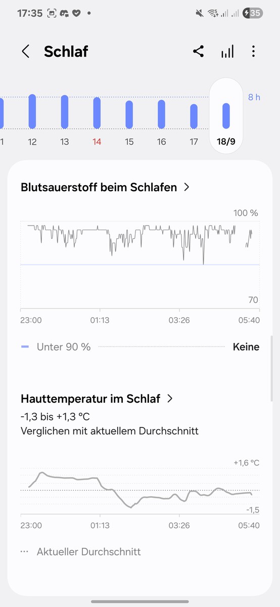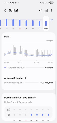 The Galaxy Watch8 also measures the blood oxygen saturation, heart rate, skin temperature, and breathing frequency during sleep. If the smartphone is also connected during the night, the smartwatch is supposed to recognize snoring and sleep apnea.