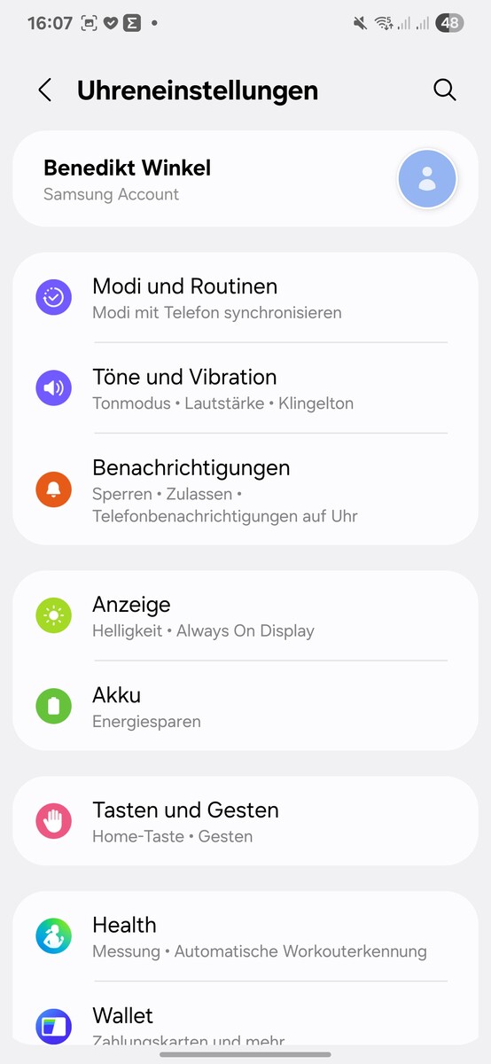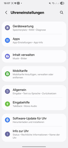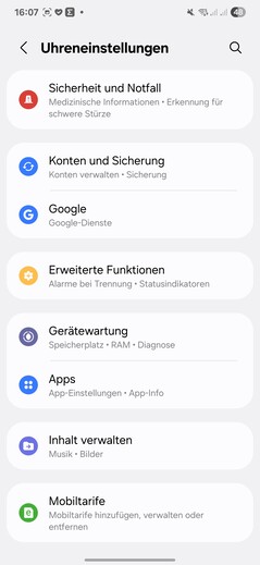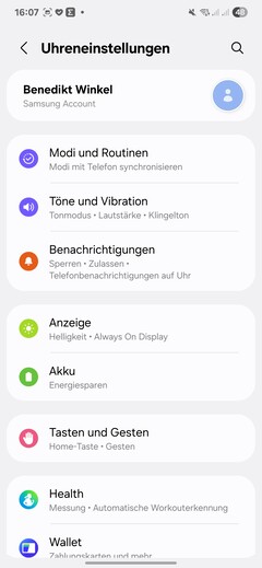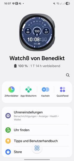 The Wear app allows you to adjust the tiles and designs. In addition, you get access to the SIM management, images and music files on the watch, and apps and key setup. The Galaxy Watch8 also offers detection of falls, and you can save your emergency contacts in the app. All the training data is collected and analyzed in the separate Samsung Health app.