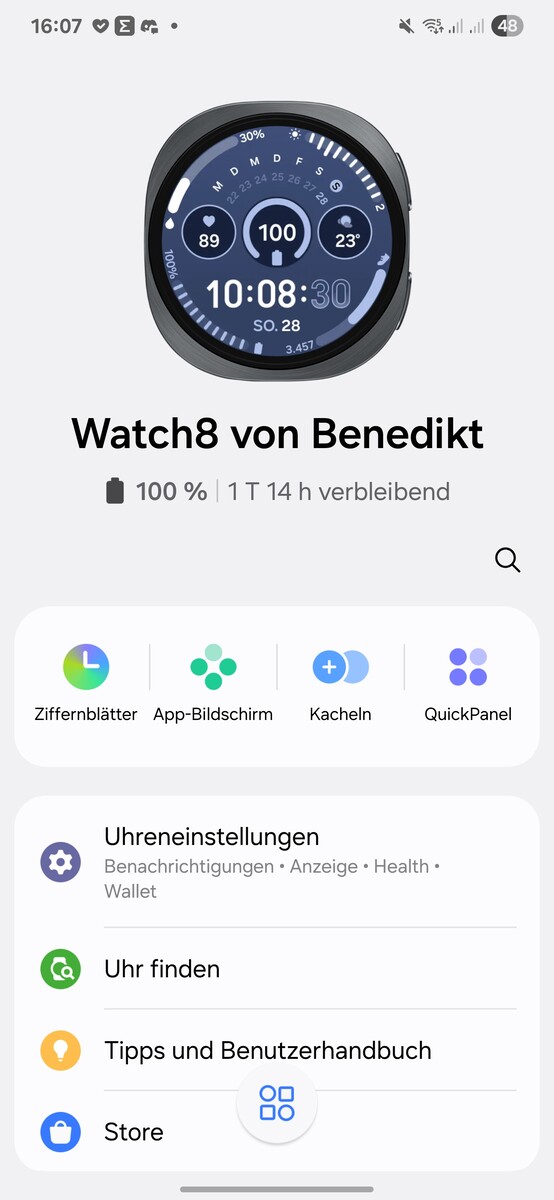 The Galaxy Watch8 can be operated via inputs on the 1.5-inch display, two keys, and finger gestures. The contents and order of the tiles can be individually adjusted.