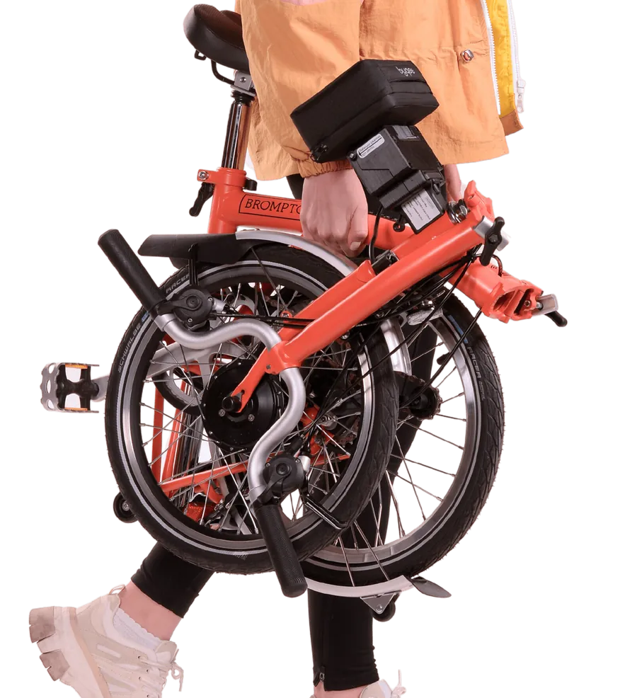 The Brompton F23 E-Bike Conversion kit is relatively lightweight, with a 250W motor weighing 2.4 kg (~5.3 lbs). The engine has a peak power of 350W and up to 45 Nm torque. A 36V 6.6 Ah battery allows you to ride with assistance for up to 40 km (~25 miles) on a single charge. Plus, the lightweight (1.2 kg/2.6 lbs) power pack can easily be detached and fully recharged in around three hours. Byqee suggests its kit is easy to install, replacing your existing front wheel with the brand’s motorized rim designed for Brompton bikes. The battery is mounted to the front of the bike’s frame, a controller is fixed to the handlebar, and a pedal assist sensor is attached to one side. Optional accessories available at an additional cost include a handlebar-mounted throttle and extra batteries.