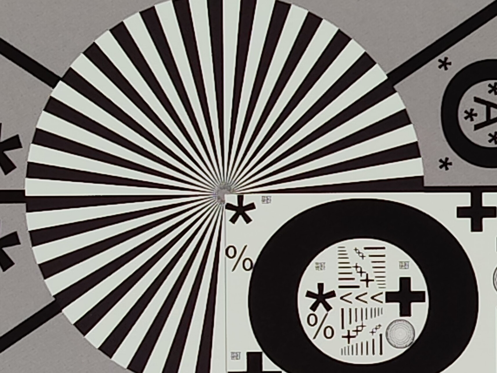 HauptkameraHauptkameraUltraweitwinkel5-facher ZoomLow-LightUnder controlled lighting conditions, the test chart remains reasonably sharp even toward the edges, although fine details appear blurred, including in the centre of the image.
