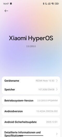 The Redmi Note 15 5G ships with Google Android 15 and HyperOS 2.0 from Xiaomi. According to the manufacturer, it is scheduled to receive version updates up to Android 19, along with a total of six years of security patches, running until January 2032.