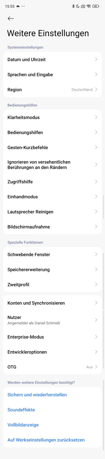 The ERM vibration motor can be adjusted in three levels. It is powerful and clearly audible, although its feedback feels somewhat soft. Various gesture controls are supported to streamline operation, and a one-handed mode is also available.