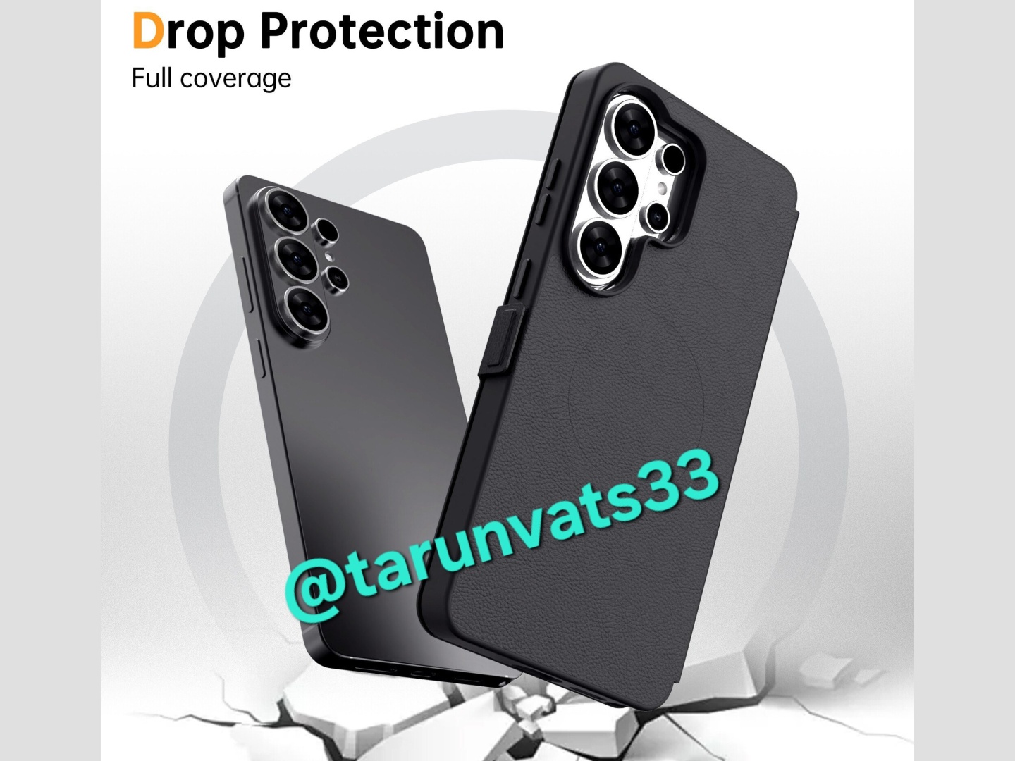 The image comes courtesy of Tarun Vats on X and shows the Galaxy S26 Ultra with and without a book style case. The one without is a black variant that has a camera island for the three main cameras on the back and the fourth camera outside the island, to the right. Above this fourth camera is the flash and an additional sensor. The power and volume buttons are on the right side. It should be noted that the image is likely based on leaked renders and there is no company branding or logo on the phone.