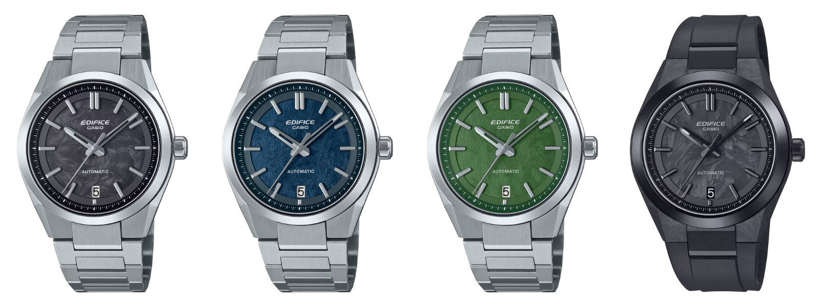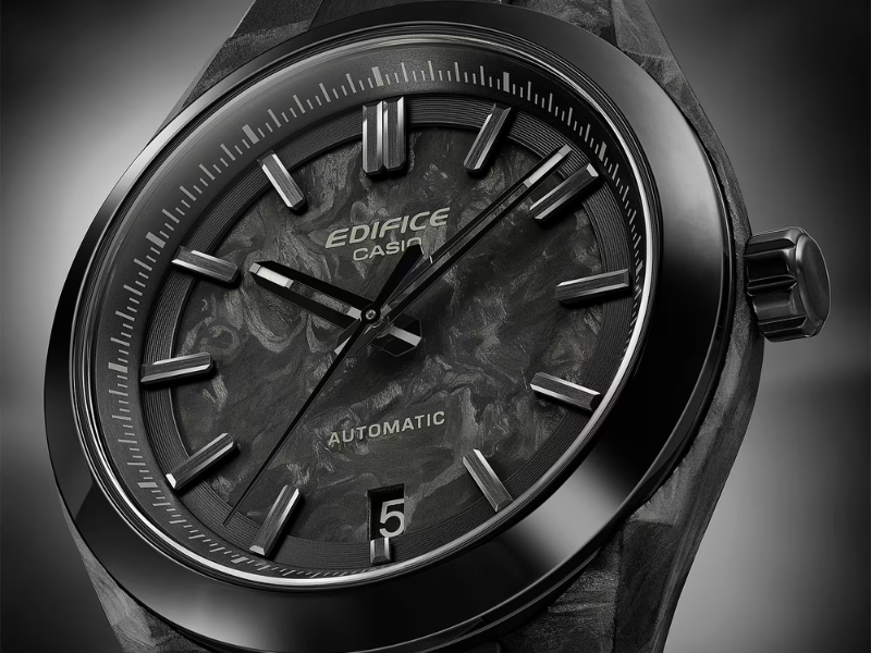 You can now buy the Casio Edifice EFK-100D-2A (blue dial) and EFK-100D-3A (green dial) watches at the brand’s online store in the UK for £269. These two models feature a forged-carbon-style textured dial. The EFK-100CD-1A, which has an actual forged carbon dial, is currently available for £289. At the top of the range is the EFK-100XPB-1A with a forged carbon casing, dial and band; this model is priced at £429.