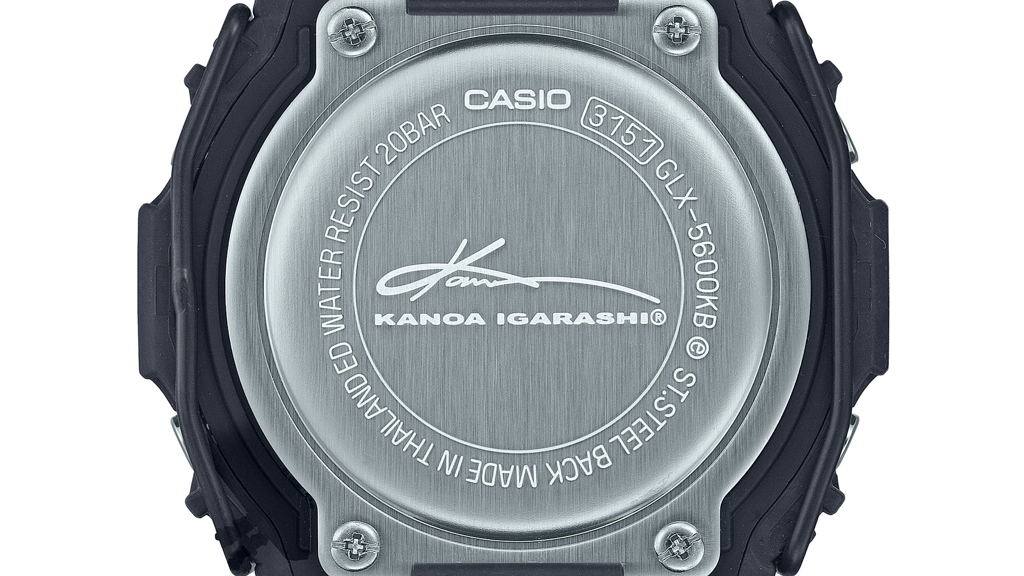 The GLX5600KB-1 is made for use in the water, which is evident by the inclusion of 200-meter water resistance and a durable, shock-resistant structure. Furthermore, it provides a tide graph, high/low tide and moon phase data, and sunrise/sunset info. These details are extremely valued by surfers for timing sessions and monitoring surf conditions. Other standard functions include a countdown timer, world time, perpetual calendar, three multi-function alarms (with snooze), auto EL backlight, and a mineral glass display. The model also includes Igarashi's signature at the top of the face and on the case back, with his championship tour surfer number "50" on the band.