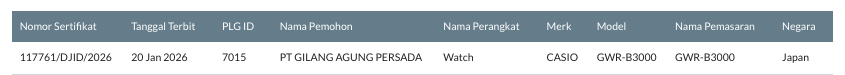 A new Casio G-Shock model is on the way: the GWR-B3000. The model number was recently spotted in databases such as the Directorate General of Resources and Equipment for Post and Information Technology in Indonesia (SDDPI).