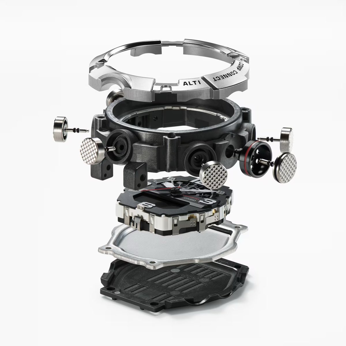 Designed for harsh terrestrial environments where debris and soil are constant threats, the new G-Shock Mudmaster series showcases a rugged aesthetic centered on a forged stainless steel bezel, with the bezel featuring a complex, uneven shape with meticulous finishing that highlights the durability of the design. The silver-colored GG-B100XM utilizes a matte finish achieved through honing, a processing technique that enhances scratch resistance against mud and dust while reducing light reflection. Meanwhile, the GG-B100XMB sports a black IP treatment with a mirror finish, offering a sophisticated, lustrous look.