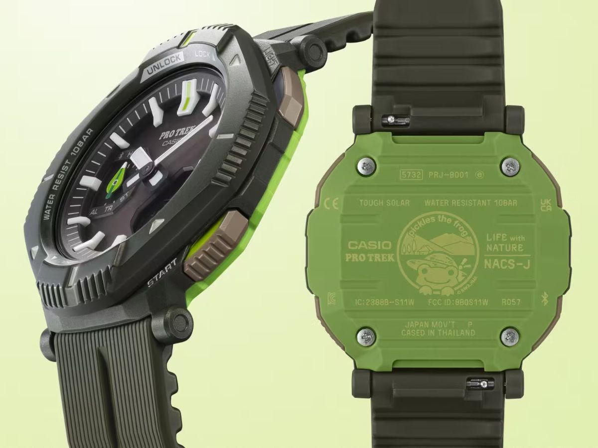 In Japan, the Casio Pro Trek x The Nature Conservation Society of Japan x Pickles the Frog collaboration watch (PRJ-B001NJ-3) will retail for ¥36,300 (~$235) at launch in March 2026. It is unclear whether or when this mid-range model could be released in other markets like the US, where the brand already sells older watches like the PRW-3510Y-8CR (curr. $385 at Amazon).