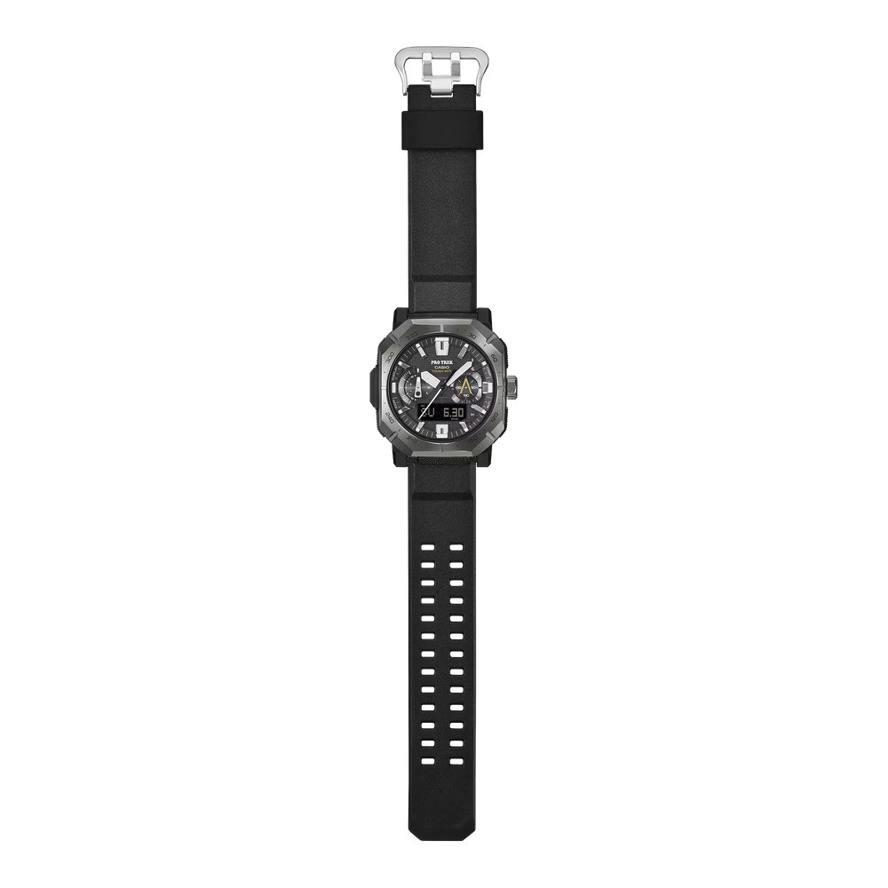 If your adventures involve campfires and stoves, you won’t have to worry about wayward sparks leaving burnmarks or damaging the watch, thanks to the flame-resistant center case. It’s also the first Casio watch that features a band reinforced with cellulose nanofiber (CNF), keeping it light and flexible while adding durability and strength to withstand harsh environmental factors.