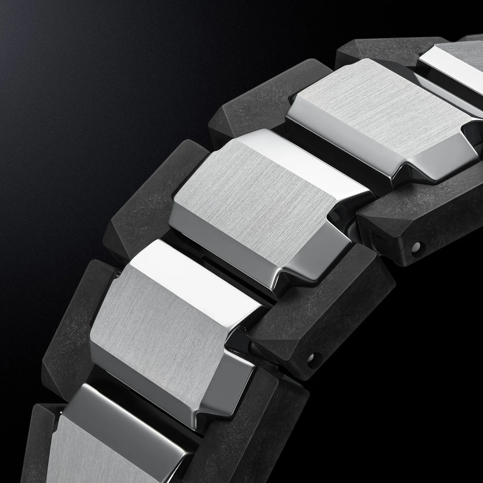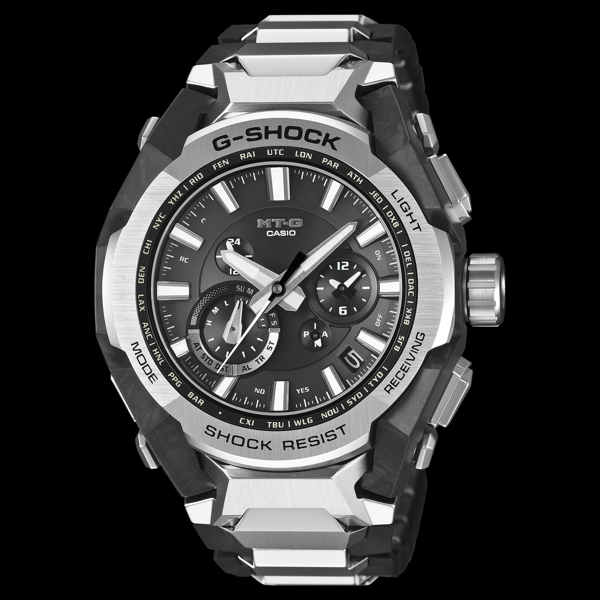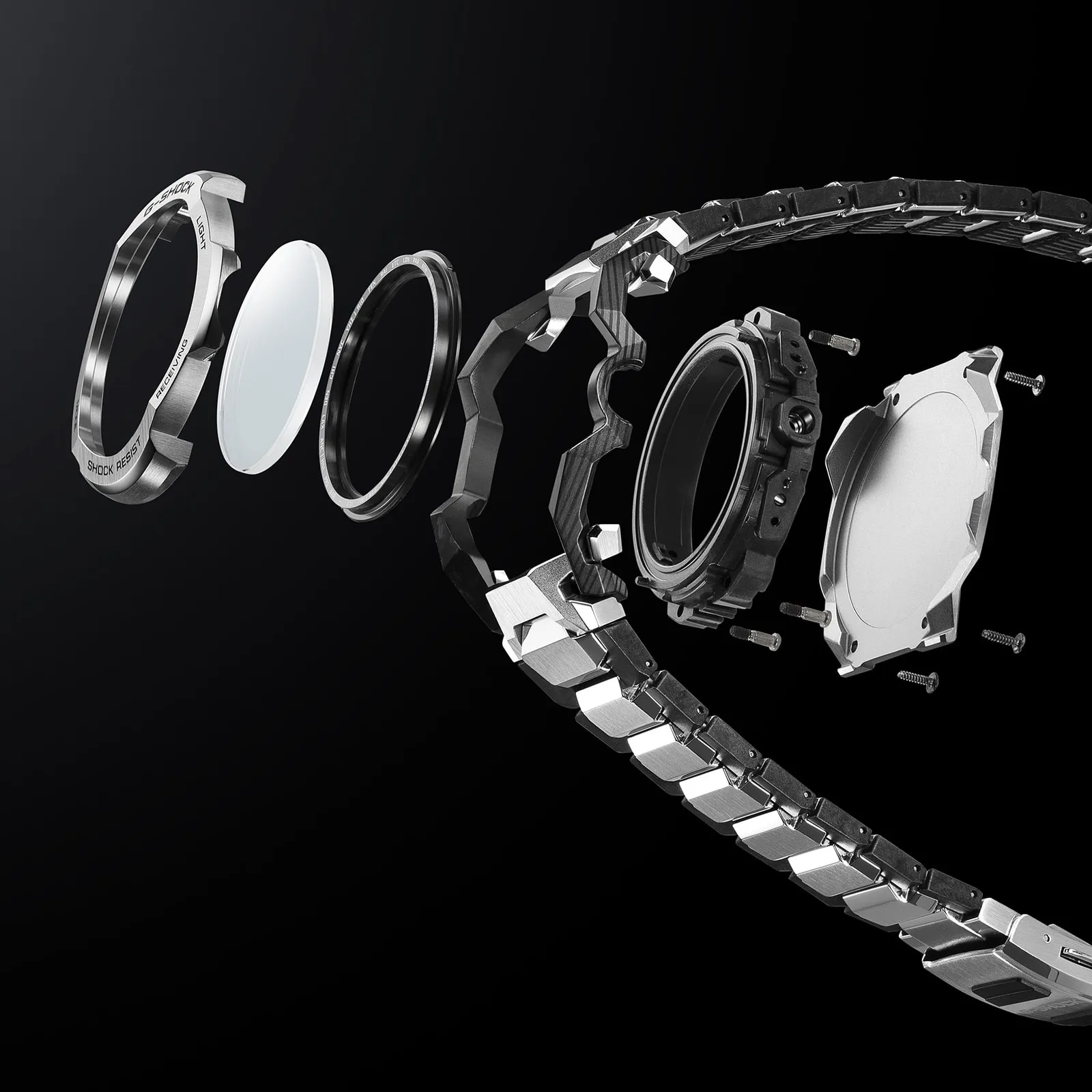 The biggest selling point of the MTG-B4000D will be its layered construction that uses carbon fiber–reinforced resin with stainless steel. Casio describes this as an evolution of its dual-core guard approach, with the carbon frame intended to absorb shock while the metal exterior for overall rigidity and protection. Exploded diagrams shared by Casio clearly show the frame, bezel, and caseback working as separate structural elements rather than a single monobloc shell.