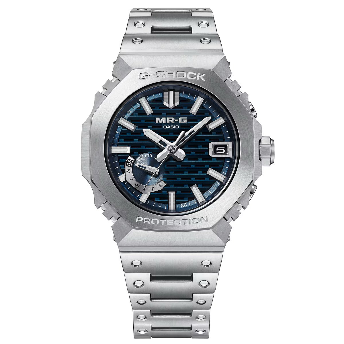 The meticulous craftsmanship and construction show why the MR-G sits at the top of the G-Shock lineup. The bezel, which is usually molded as a single piece, is divided into 27 separate components, and the dimples on the bracelet are also made of separate parts, with each component polished by hand by skilled artisans for a distortion-free mirror finish.