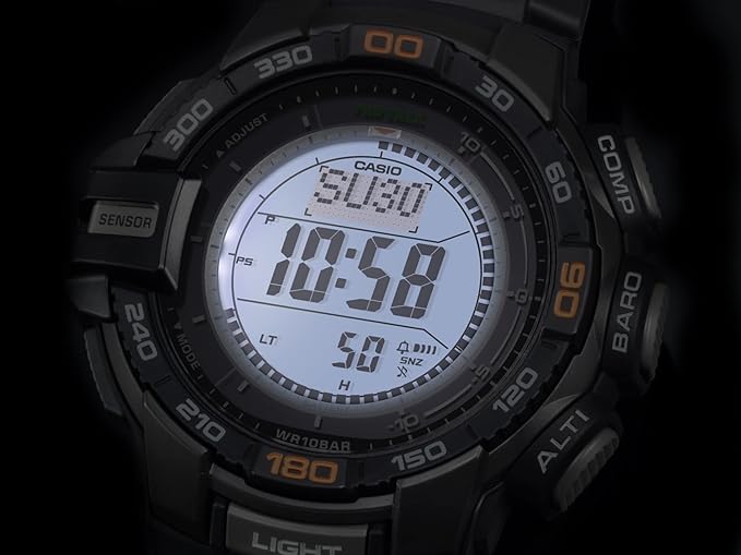 The PRG270 is built around Casio’s Triple Sensor Version 3 tech, packing in an altimeter, barometer, and digital compass (ABC) into a surprisingly wearable chassis. According to Casio, the sensors are 95 percent smaller than previous generations while still delivering improved accuracy and energy efficiency. They can be easily accessed by large one-click side buttons.