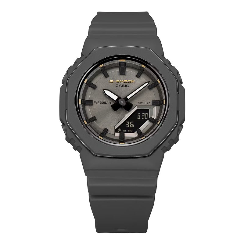 For the upcoming International Women’s Day, Casio is unveiling a stylish new G-Shock that aims to balance durability with understated elegance. The new G-Shock GMA-P2126W-8A is a compact analog-digital model defined by its monochrome dark gray aesthetic and a striking metallic ring that frames its signature octagonal bezel.