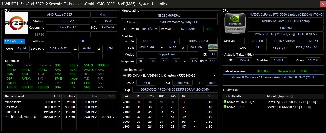 | Schenker XMG Core 16 M25 (Angelbird AV Pro V60) | |