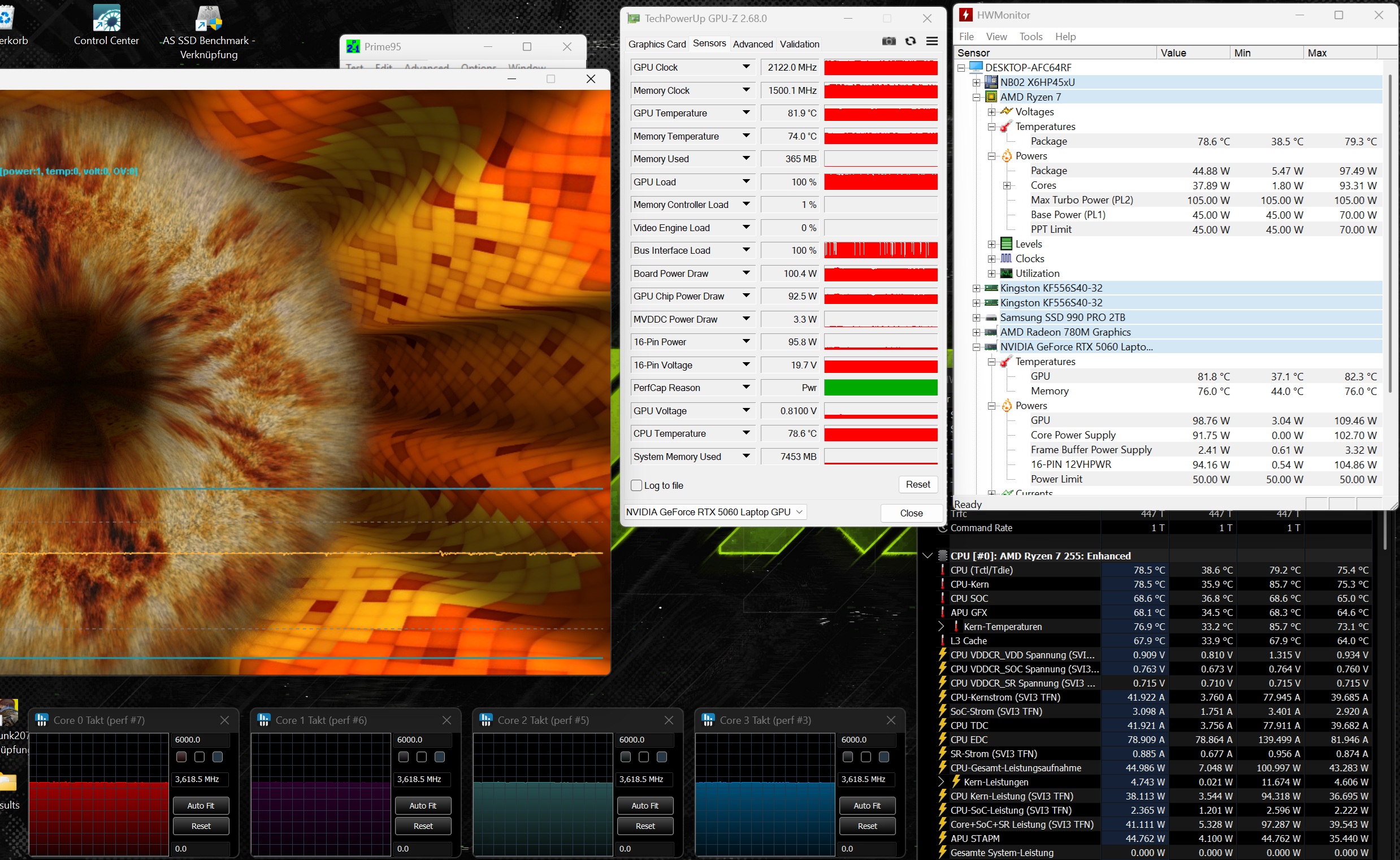 The Ryzen 7 255 is still rarely found in laptops. Built on a 4 nm process, the chip offers eight cores and can handle up to 16 threads. Unlike the Core i7-14700HX in the Tulpar T6 V3.5, performance remains consistent even under prolonged load - although it still falls short of processors such as the Core Ultra 7 255HX, Core Ultra 9 275HX, Ryzen 9 8940HX and Ryzen AI 9 HX 370.
