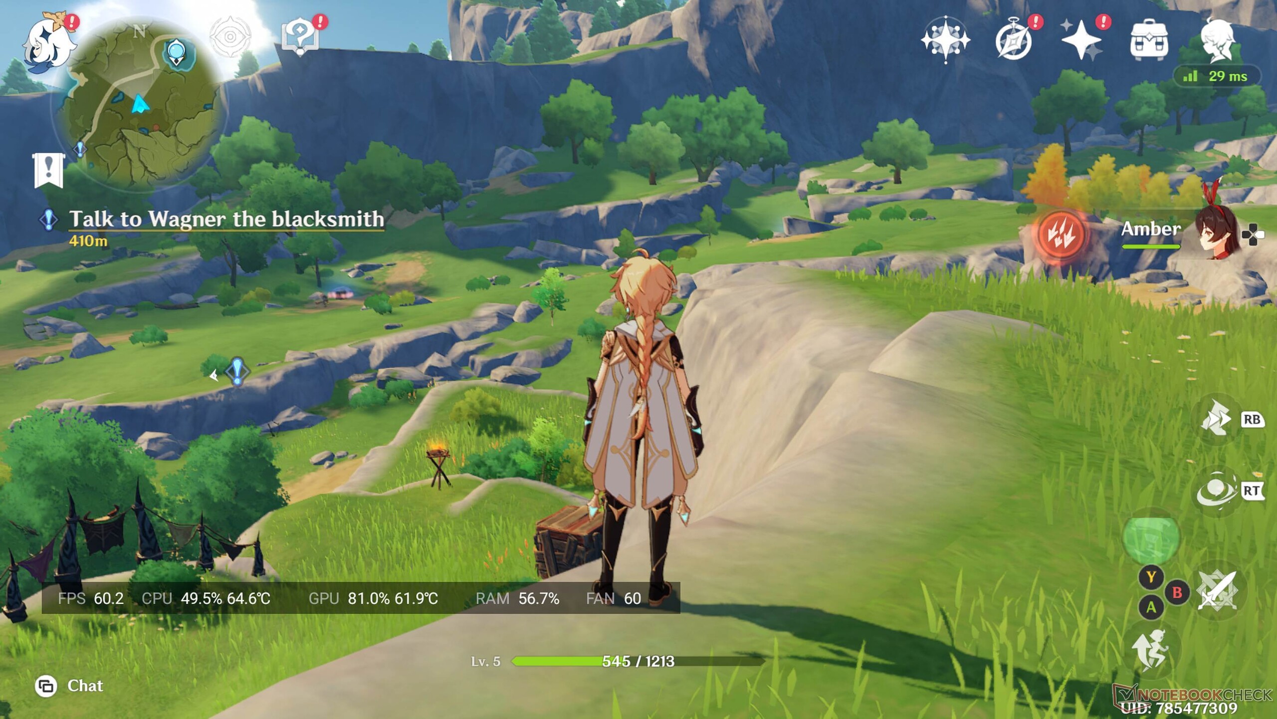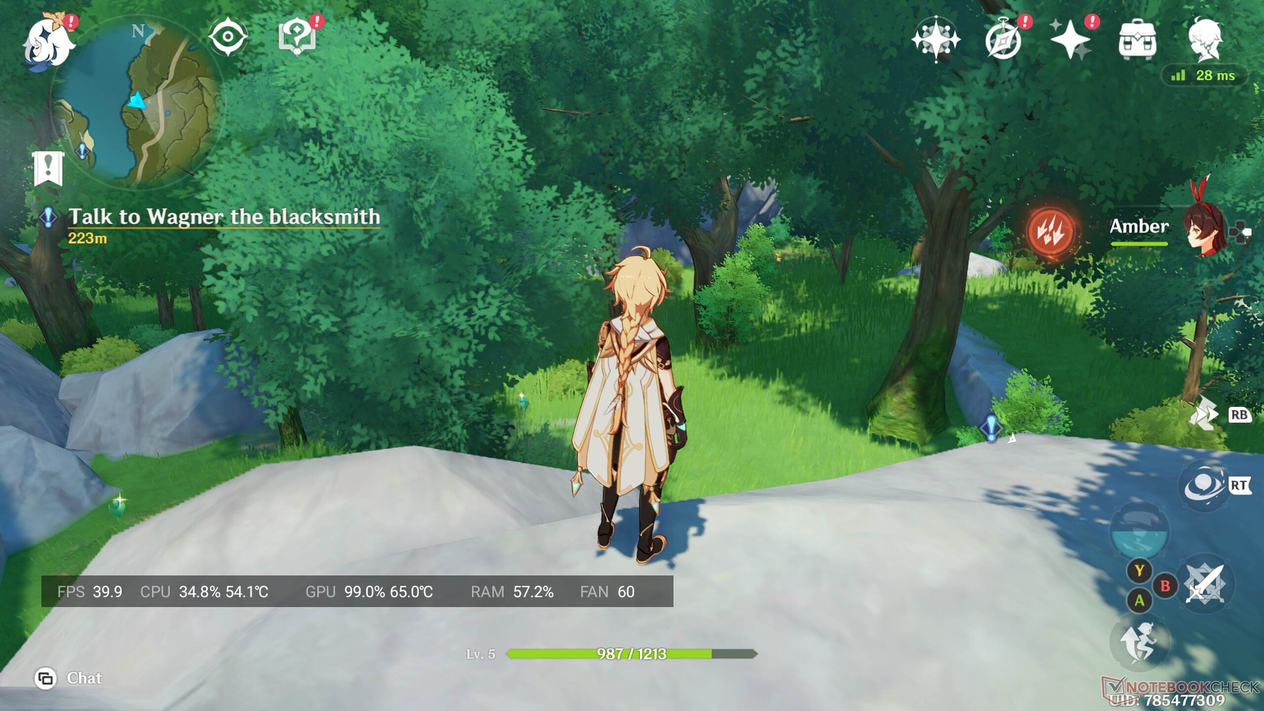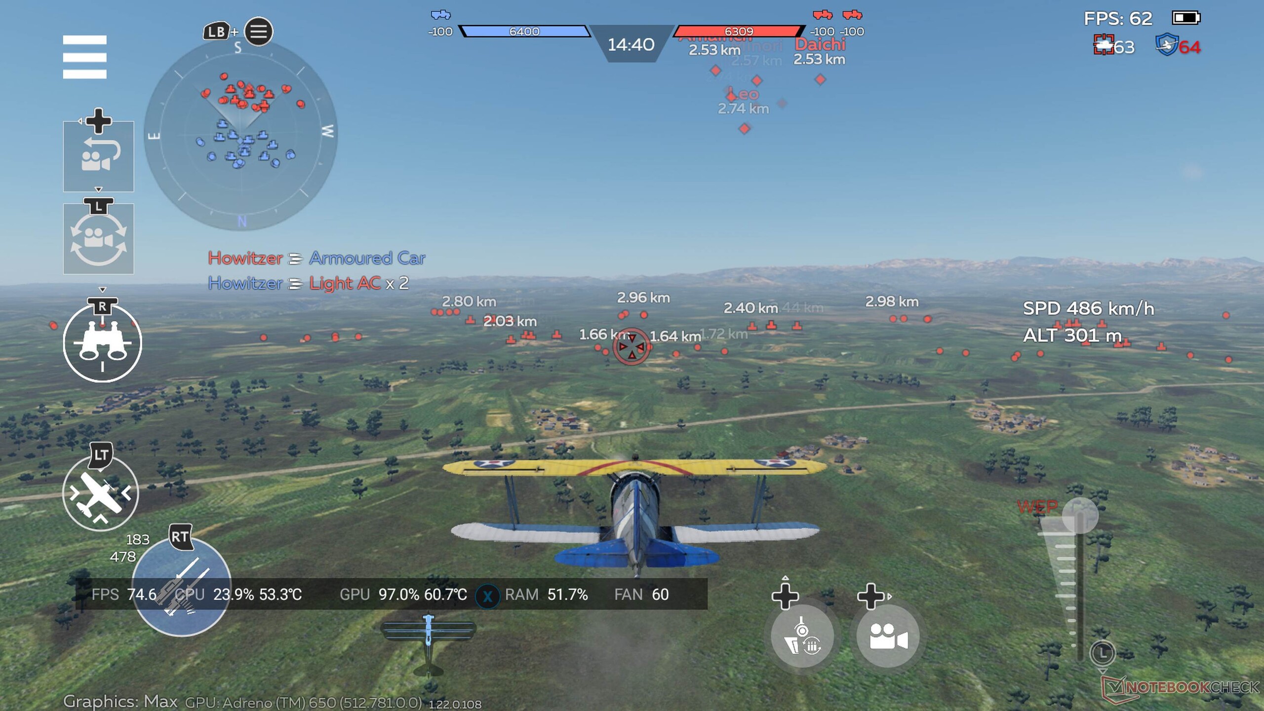 It uses the Qualcomm Snapdragon 865 and thus a computing chip that is already over six years old. At the end of this article, you can find a performance comparison with various current smartphones and also with the Qualcomm Snapdragon 8 Gen 2 used in the Odin2 portal to get a feel for the performance of the old SoC in 2026. One thing is clear: the Mangmi Pocket Max cannot render current triple-A titles locally, but it is also more of a Android or retro handheld and not an alternative to, for example, an Asus ROG Ally. Nevertheless, the Snapdragon 865 easily manages to accelerate even demanding Android titles with good to excellent playability. In Genshin Impact, for example, a stable 60 frames per second can be achieved at medium-high settings - the title does not support more than this at Android. In War Thunder Mobile, fluid frame rates can also be achieved at all times in air and ground battles at high settings. The frame rate naturally benefits from the resolution of 1,920 × 1,080 pixels, which is significantly lower than on current smartphones. Where Wind Meets, which is also free and graphically quite impressive, is also easy to play. The SoC reaches its limits with the Quality preset, but we had a very good gaming experience with the Balanced preset. Positive: We were also unable to provoke throttling in synthetic benchmarks. The fan is clearly audible at maximum speed. In our experience, however, this is never really necessary, as the smart fan control seems to be a little overly robust.