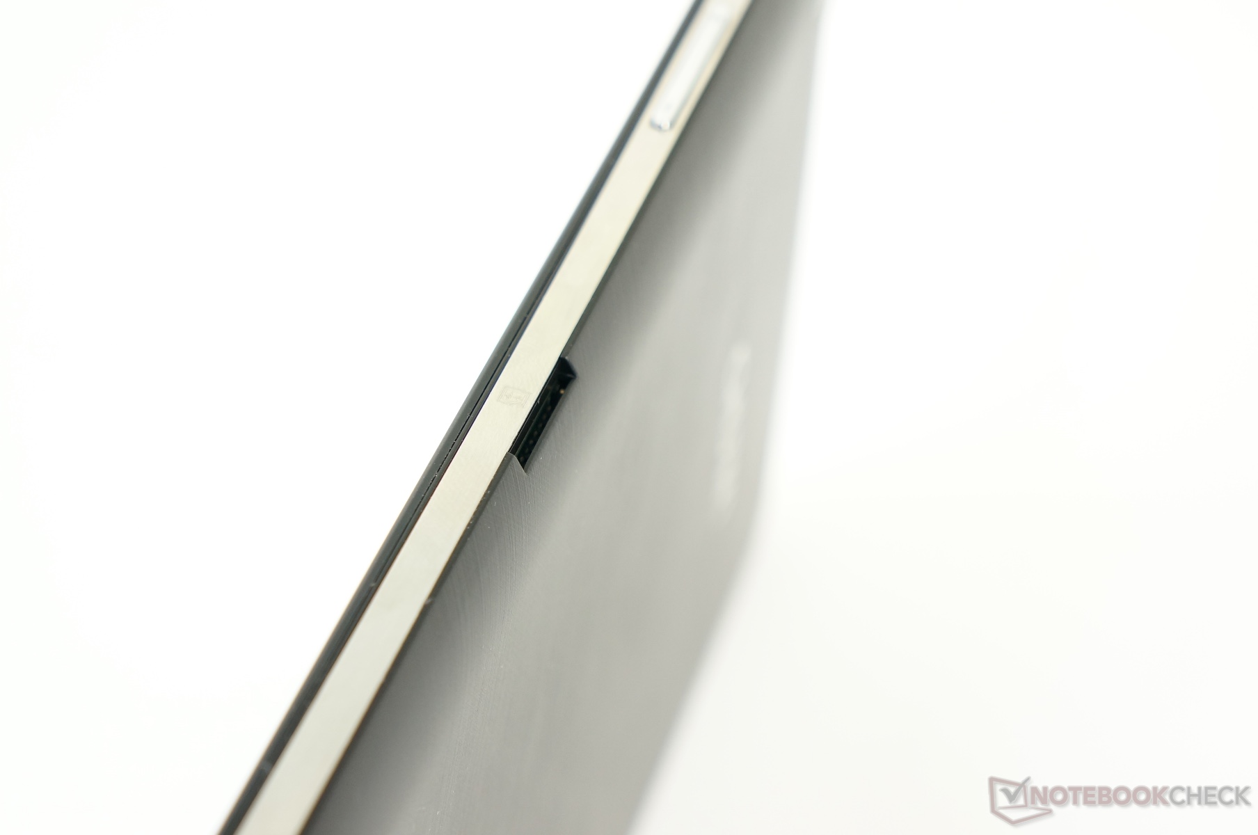 The battery and innards of the Chuwi Vi8 are not accessible. Only 4 screws that additionally fix the glued metal strip are visible from the outside. However, they do not seem to keep the casing together. We did not make any further opening attempts since that would have likely also damaged the outer shell.