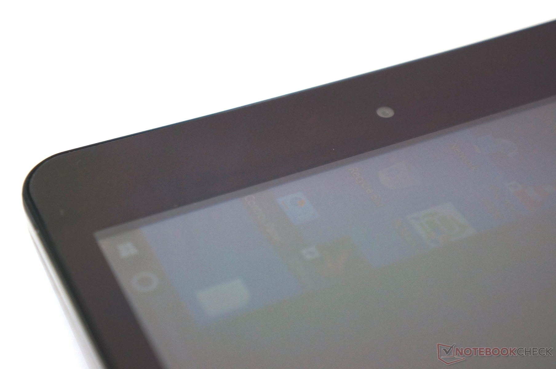 The Chuwi Vi8 comes in a plain plastic casing with metal strips glued and screwed to the sides as a highlight. The line-patterned plastic back provides good grip but is not particularly scratch resistant. Its stiffness does not set new standards, but it is throughout acceptable. The gaps are even, and only the screen protector applied ex-factory exhibits one minor flaw: There are two small air bubbles outside the screen surface area. The two buttons offer a well-defined pressure point and are incorporated firmly into the casing. An orange LED on the front-facing camera's right indicates whether the tablet is connected to an outlet and if it is recharging. Unfortunately, the blinking LED is somewhat distracting during use.
