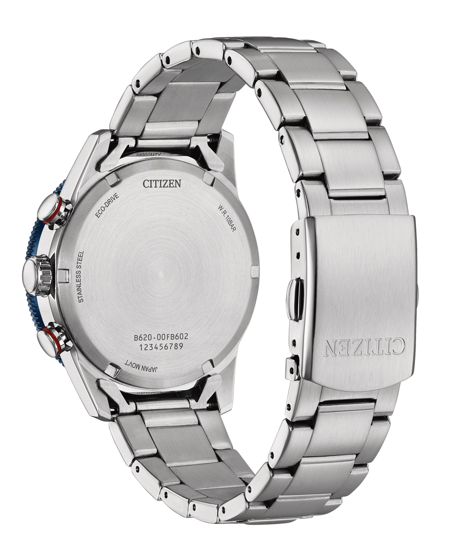 The mechanical performance of the CA4716-50L is driven by the Caliber B620 Eco-Drive movement. As a light-powered caliber, it converts both natural and artificial light into energy, and can maintain a power reserve of approximately 9 months on a full charge under normal use conditions. The movement features a 1/5-second chronograph capable of measuring up to 60 minutes, a 24-hour sub-dial for AM/PM distinction, and a date window positioned between the 4 and 5 o'clock markers. The B620 also has an insufficient charge warning and an overcharge prevention function.