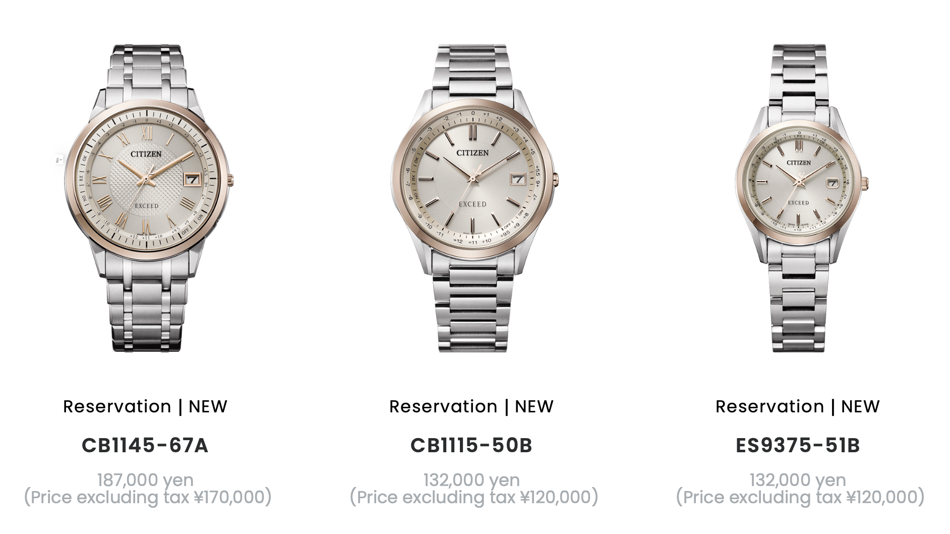 Alongside a new Series 8 model, Citizen has introduced three fresh models under its Exceed lineup in Japan, and they are all scheduled for release on March 5. The new references - ES9375-51B, CB1115-50B, and CB1145-67A - feature Eco-Drive solar tech with multi-band radio timekeeping, and come in slim Super Titanium cases.