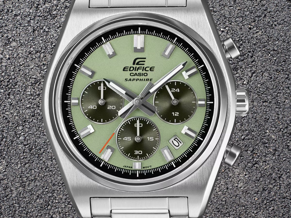 The Casio Edifice EFB-730D-2BV has a light blue dial, dark blue sub-dials, and a silver colored stainless steel casing, bezel and strap. The Casio Edifice EFB-730D-3AV has the same metal casing and strap, but with a light green dial and dark green sub-dials. The Casio Edifice EFB-730L-7AV has a cream/pale yellow dial, with contrasting black sub-dials. While it also has a stainless steel casing, it comes with a tan colored genuine leather strap. Casio has yet to announce plans to release these new Edifice EFB-730 watches in the US.