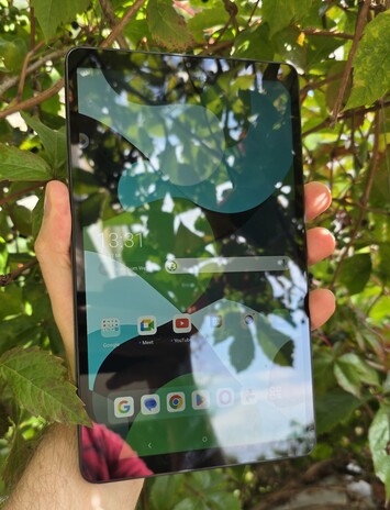 The 8.7-inch IPS panel only uses an 800p resolution, resulting in a low pixel density of less than 200 PPI. The sharpness of the 60 Hz panel is not really high and pixel structures are visible on closer look.