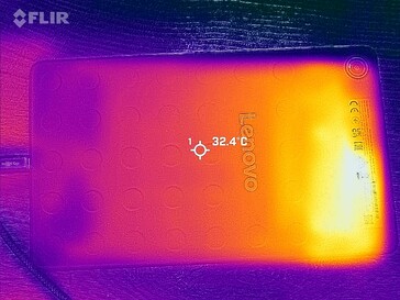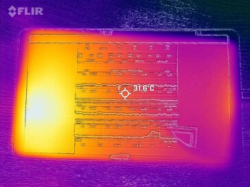 (+) In idle usage, the average temperature for the upper side is 27.7 °C / 82 F, compared to the device average of 30 °C / 86 F.