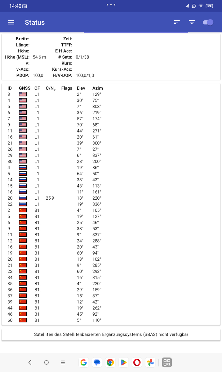 The affordable tablet from Lenovo also offers GPS tracking with the WLAN version. The Tab One uses the main satellite systems: GPS, GLONASS, Galileo and Beidou in single band. Models with WWAN (TB305XU) also have A-GPS for faster positioning. In our review, the selection is somewhat more limited and SBAS for more precise tracking cannot be used.