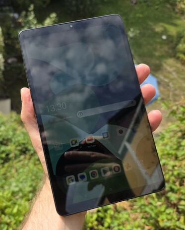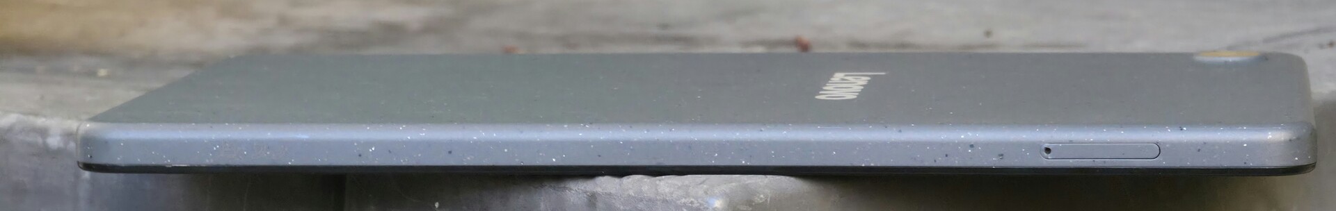 The screen bezels are pleasantly small, giving the tablet a modern optic. With a screen-to-body ratio of 82 percent, the Lenovo Tab One even offers significantly better look than a more expensive iPad Mini (2024) which only hits around 77 percent. However, the entry-level tablet does not come with official IP certification.