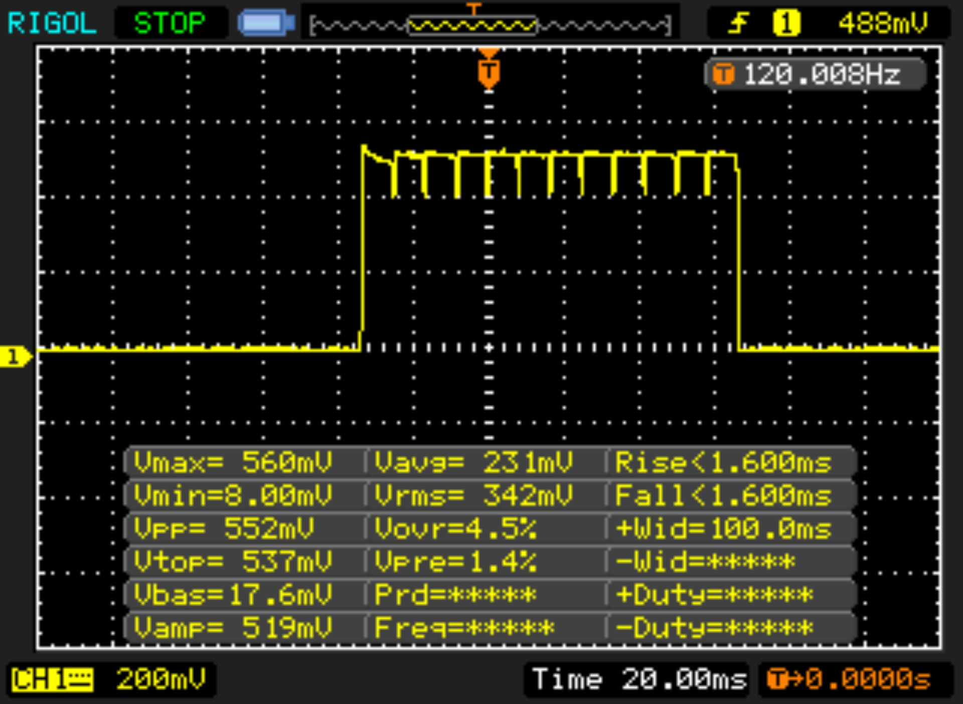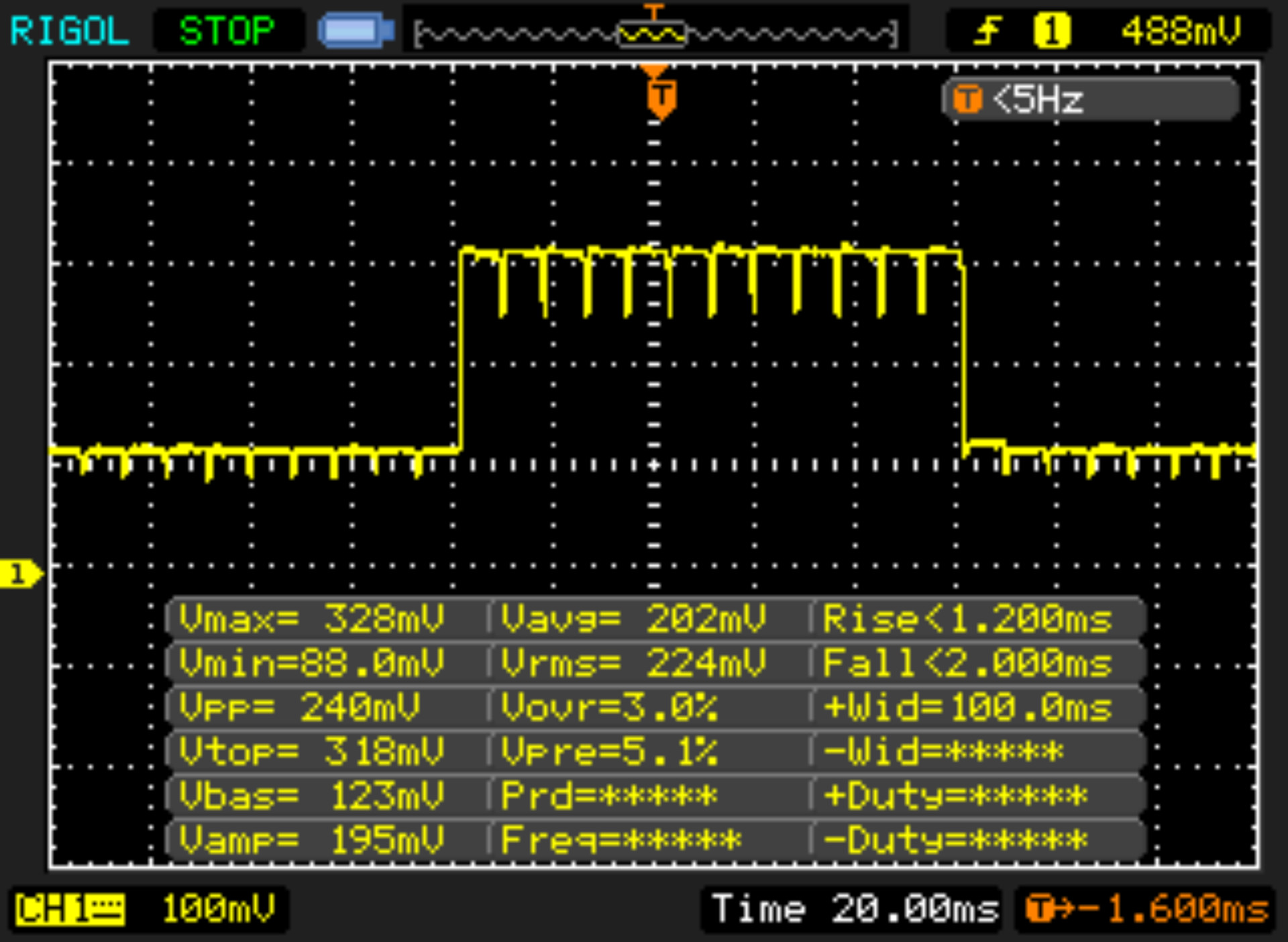 | 3.2 ms ... rise ↗ and fall ↘ combined | ↗ 1.2 ms rise | |