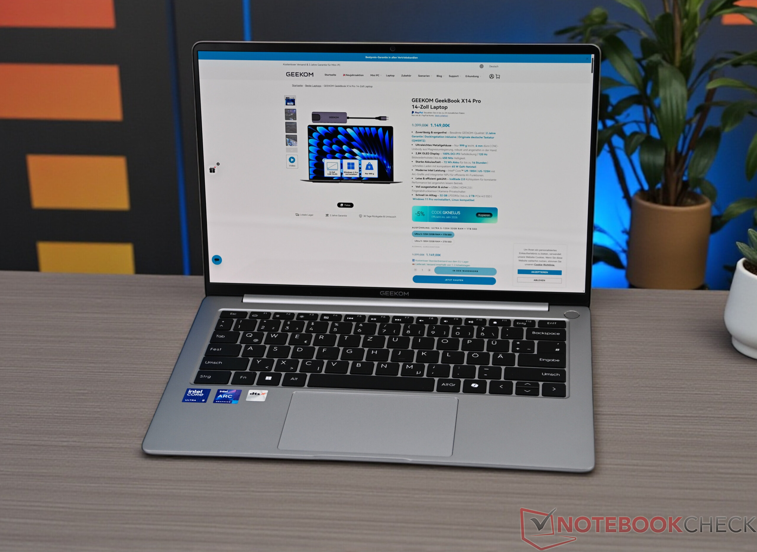 With the GeekBook X14 Pro and the larger GeekBook X16 Pro, Geekom, a manufacturer previously known primarily for mini PCs, is expanding its portfolio to include notebooks for the first time. Our test focuses on the more compact 14-inch model, which is equipped with an Intel Core Ultra 9 185H, 32 GB RAM and a 2 TB SSD in the top configuration. The recommended retail price is 1,599 euros, although Geekom often offers its devices at a discount. A cheaper version with Intel Core Ultra 5 125H, also 32 GB RAM and 1 TB SSD, starts at around 1,399 euros.