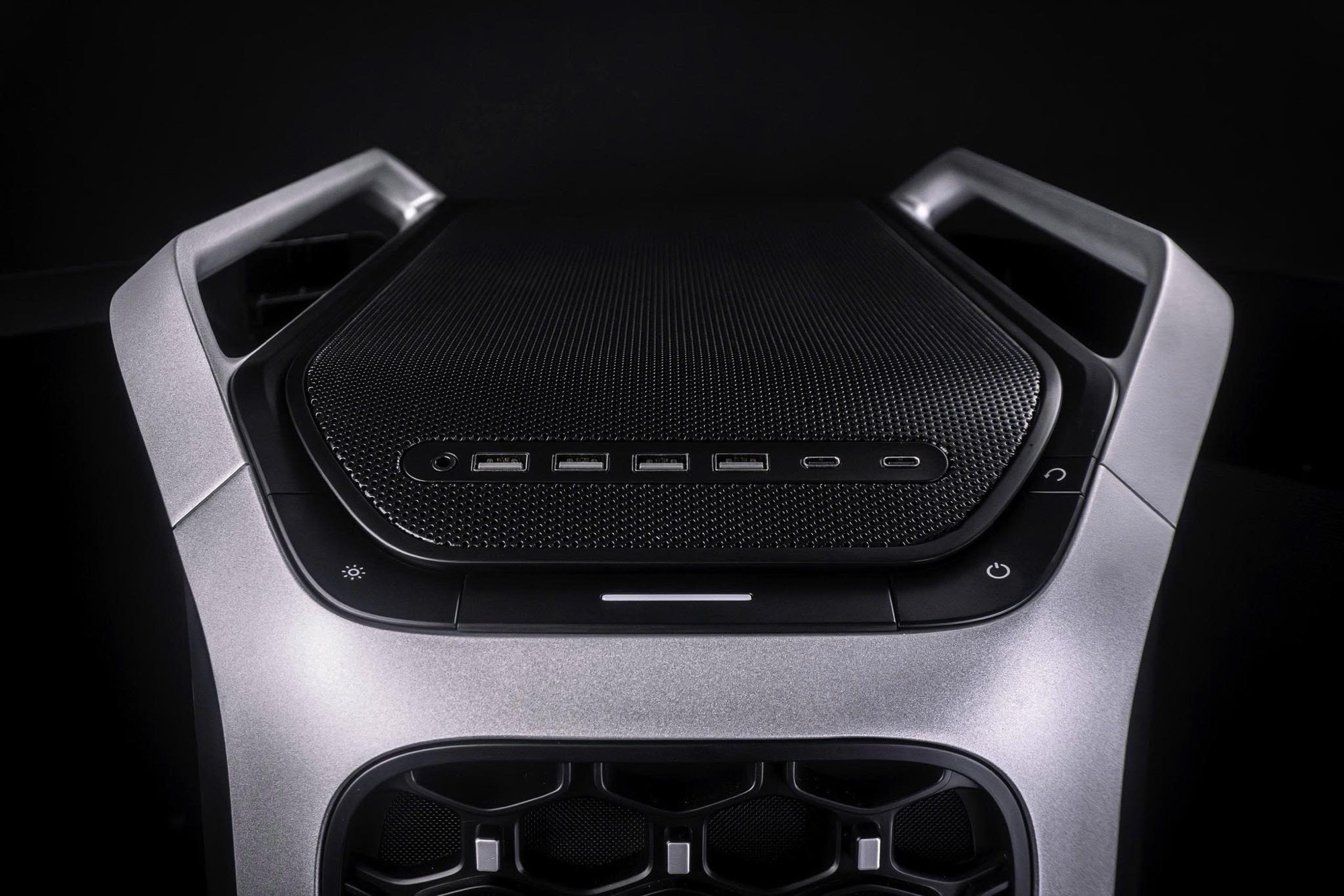 LED strips on the underside provide indirect lighting, which can be controlled via a dedicated button on the top of the case. Right next to this button are four USB-A ports, two USB-C ports and a 3.5 mm headphone jack. The microphone of a connected headset can be muted using a button on the case. Cooler Master has not yet confirmed all the specifications; the product page was taken offline shortly after its release but is expected to return soon.