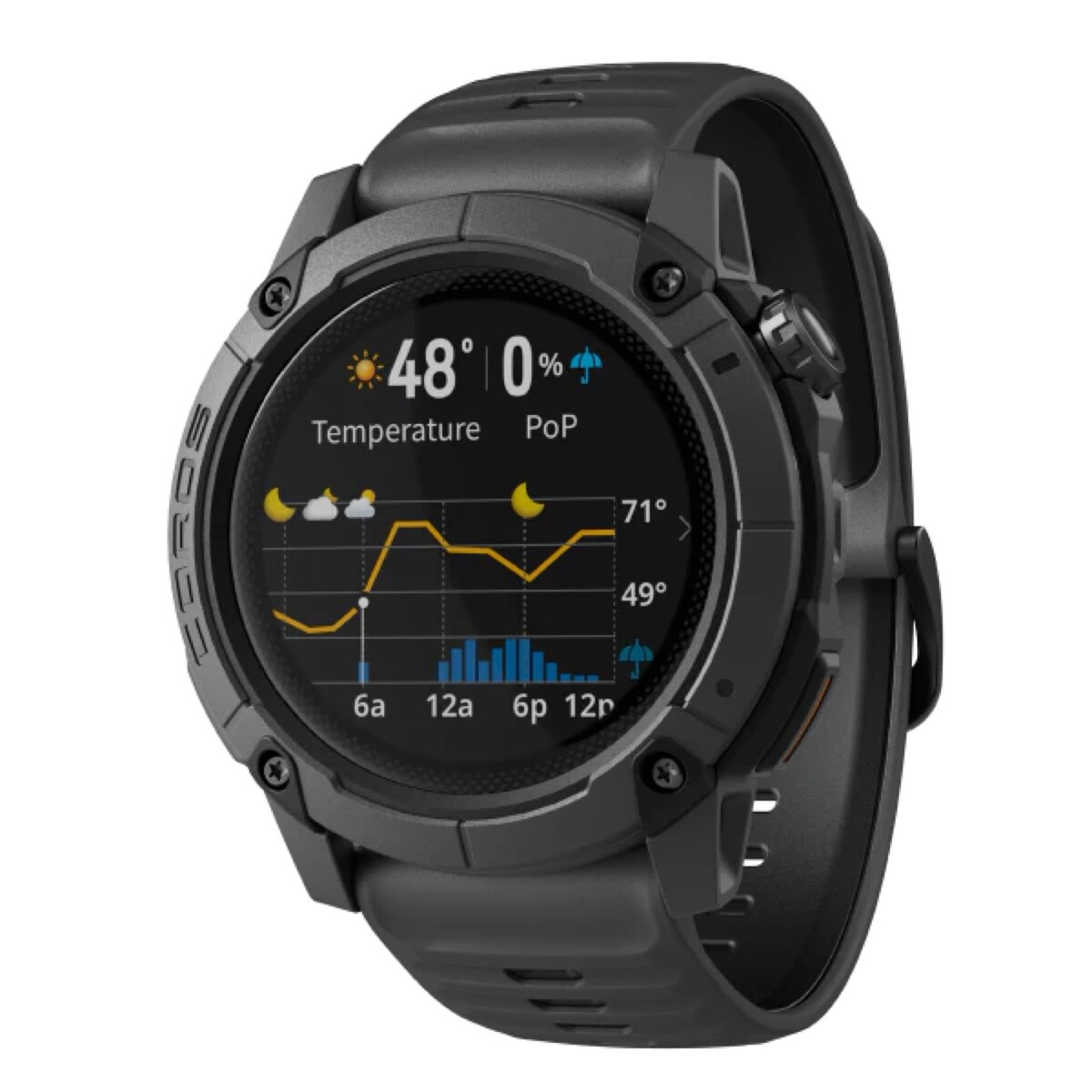 In addition to a heart rate and SpO2 sensor, the Coros Nomad also features an electrocardiogram (ECG), a 3D compass, an altimeter and a skin temperature sensor. The watch can remotely control select GoPro and Insta360 cameras, track sleep and stress, and display training load and recovery time after a workout.