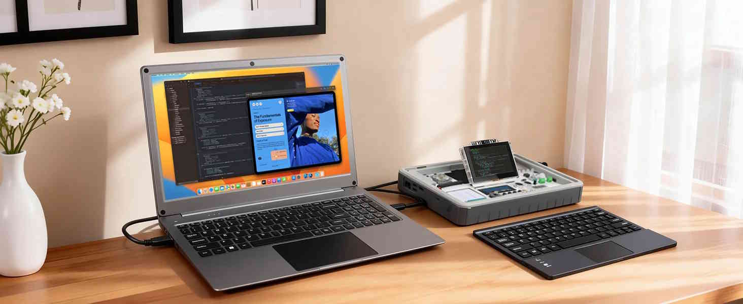 Elecrow offers systems that can be simply described as laptops without a dedicated processor. The CrowView Note 15.6 is one such model, which connects to a compatible smartphone or a mini PC. This can be used, for example, while traveling, when answering emails or handling simpler tasks without using dedicated Windows or macOS programs, or when users don't want to forgo a (limited) notebook experience.