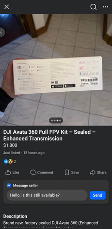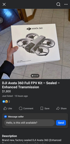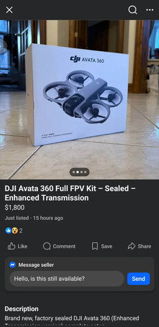 On the other hand, a Redditor has spotted someone selling the Avata 360 on Facebook Marketplace. Although the Facebook Marketplace does not show the drone itself, the pictures provided corroborate the retail box design visible in Xdrones Studio's image. Currently, leakers like Jasper Ellens believe that the Avata 360 will debut next month in China. Pricing is rumoured to be starting at CNY 2,988 (~$435); a global launch could occur in early April.